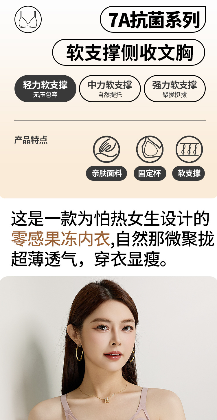 추적없는 부드러운 지원 7A 항균 속옷 여성 유방 처짐 방지 소프트 지원 고정 컵 편안한 뷰티 백 브라