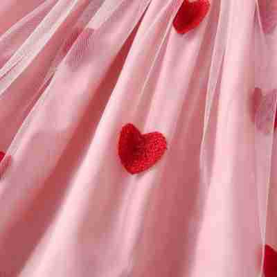 소녀의 한국 스타일 달콤한 귀여운 둥근 목 긴 소매 사랑 자수 메쉬 공주 원피스 싱글 조각스토어 가기