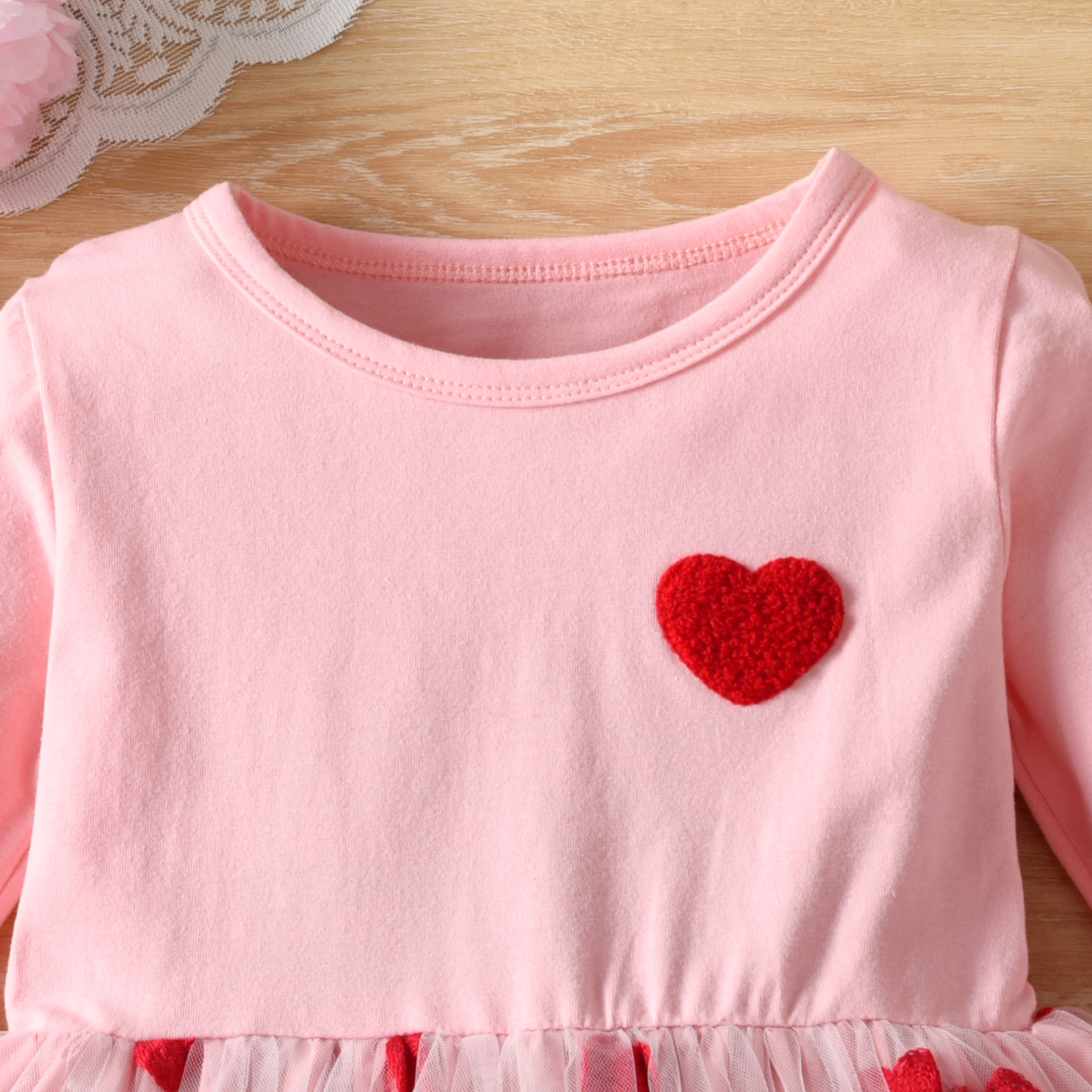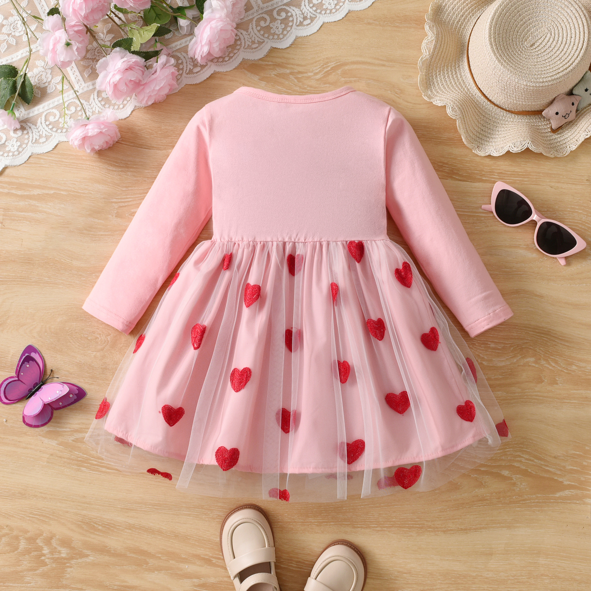 소녀의 한국 스타일 달콤한 귀여운 둥근 목 긴 소매 사랑 자수 메쉬 공주 원피스 싱글 조각