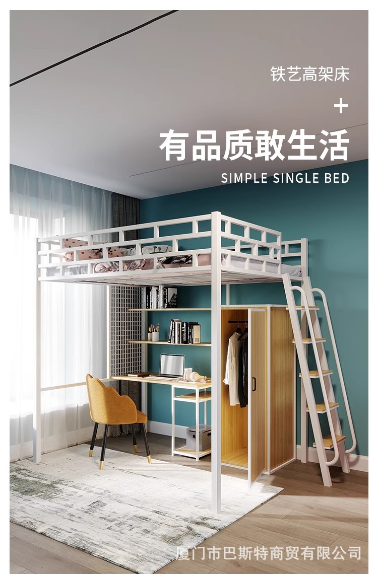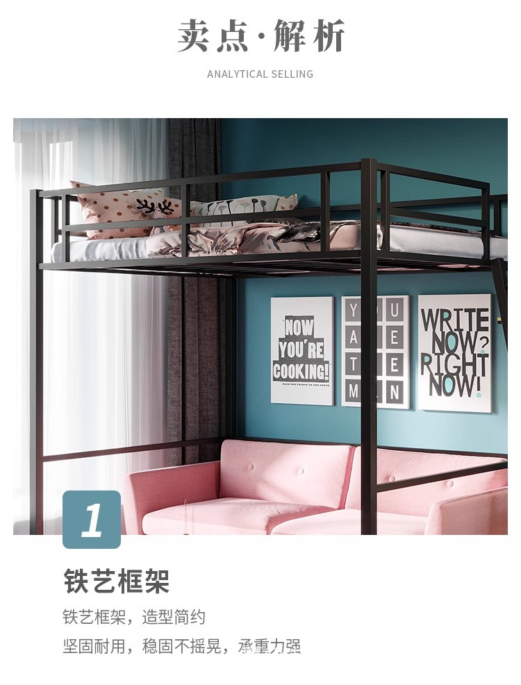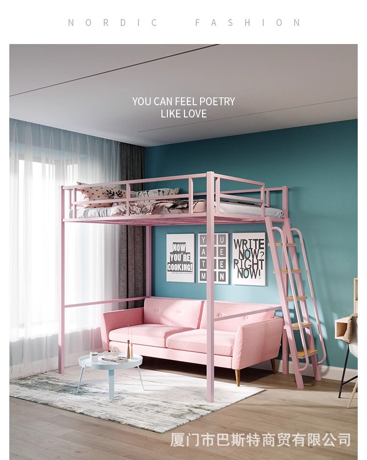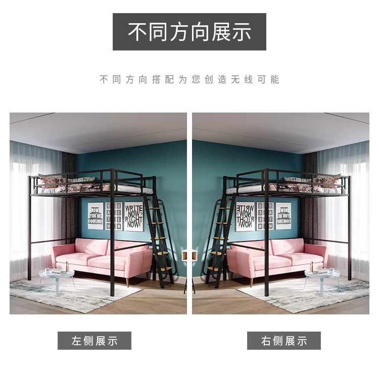 빈 아이언 로프트 침대 프레임 침대 밑에 침대 간단한 현대 높고 낮은 침대 공간 절약 성인 로프트 침대 시트 더블 침대 침대스토어 가기
