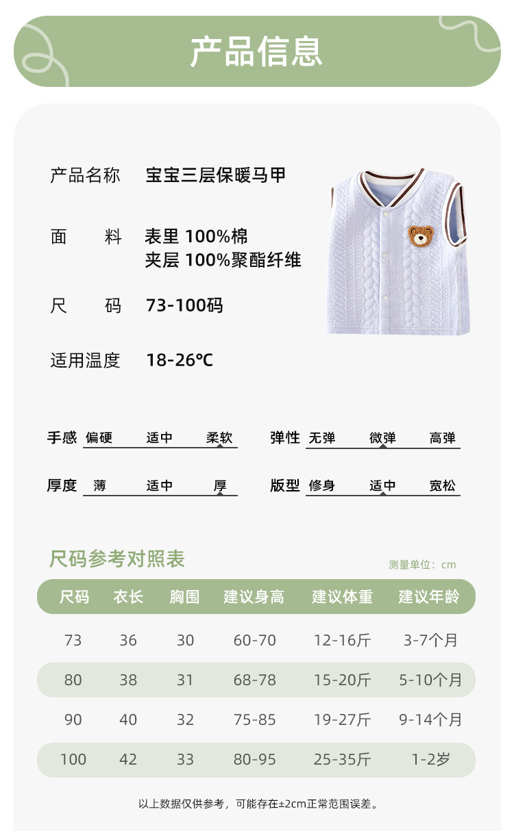아기의 면 조끼 아기의 가을과 겨울 따뜻한 조끼 어린이 두꺼운 여자 어깨 허리 코트 소년 작은 말 클립