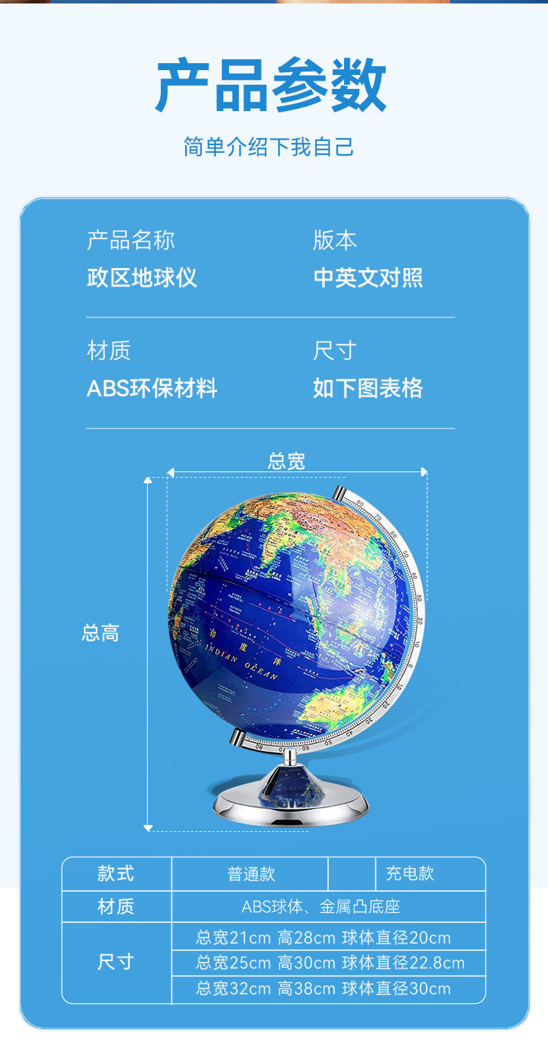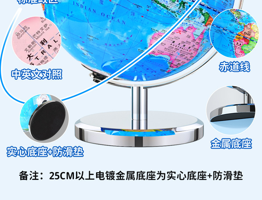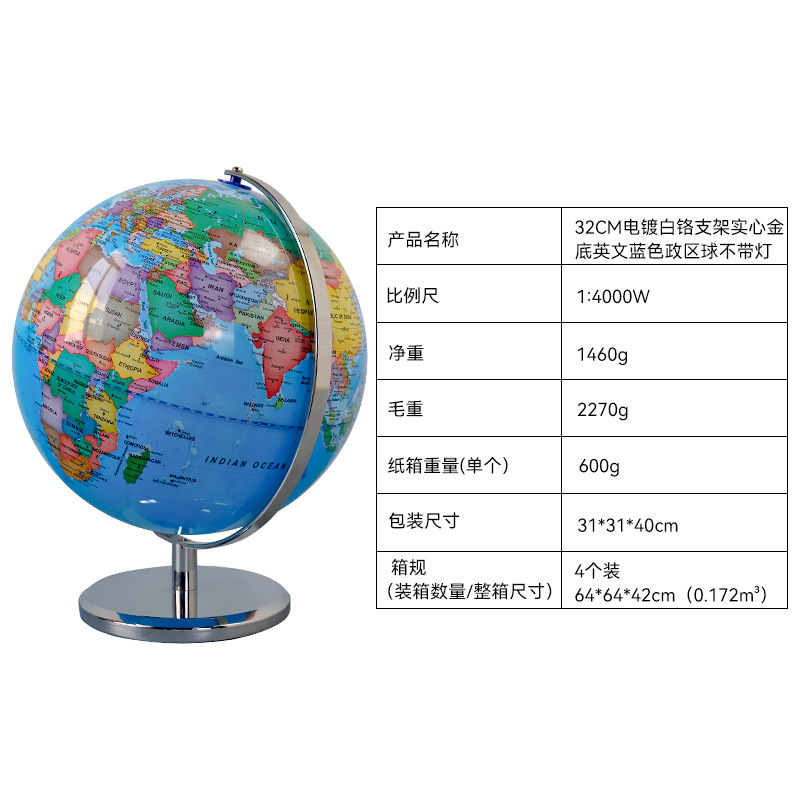 • [대외 무역 모델] 20cm 전체 영어 정치 구역 공/전기 도금 금 베이스/조명 없음