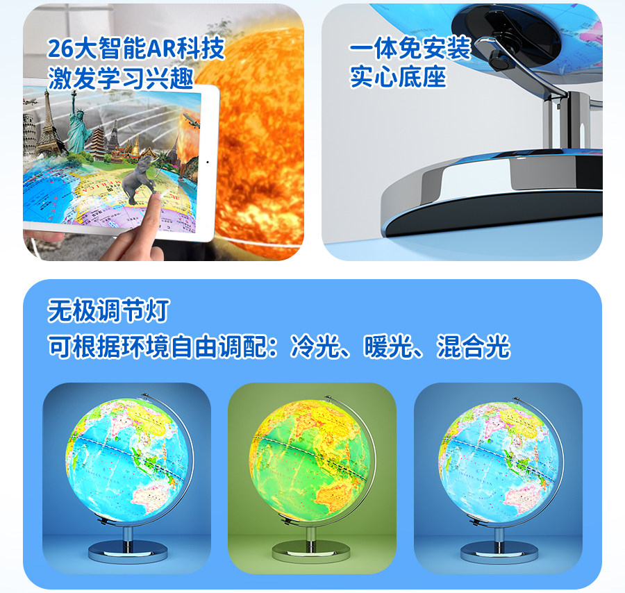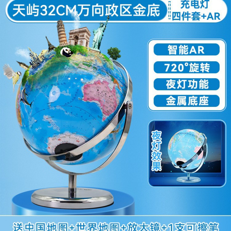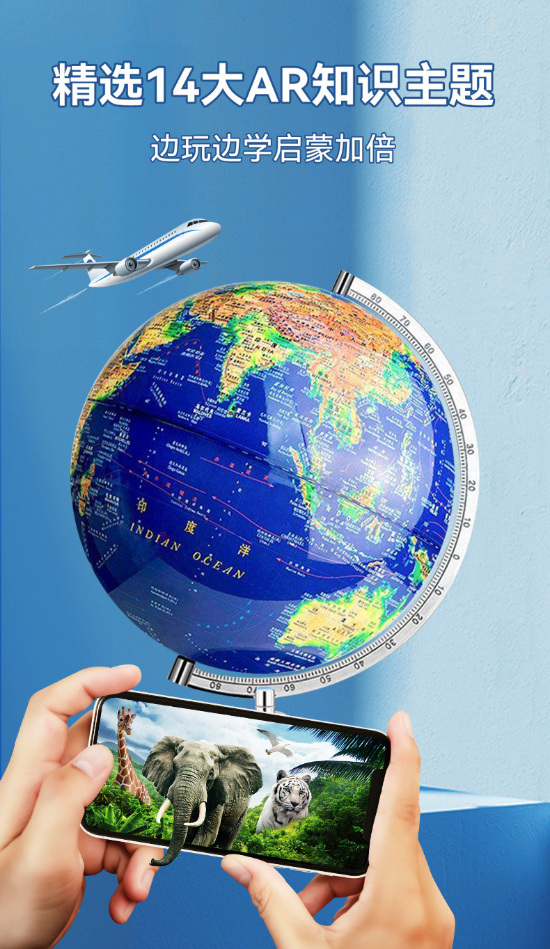 어린이 교육용 AR 지구본 초중등학생용 과학기술 트렌디한 3D 솔리드 메탈 입체 스마트 AR 장난감스토어 가기
