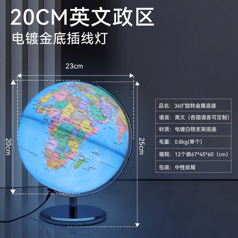 • [대외 무역 모델] 20cm 전체 영어 정치 구역 공/전기 도금 금 베이스/직접 플러그 조명