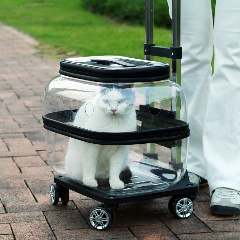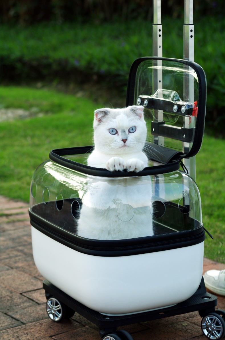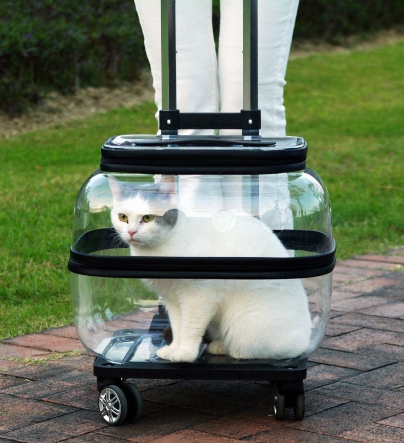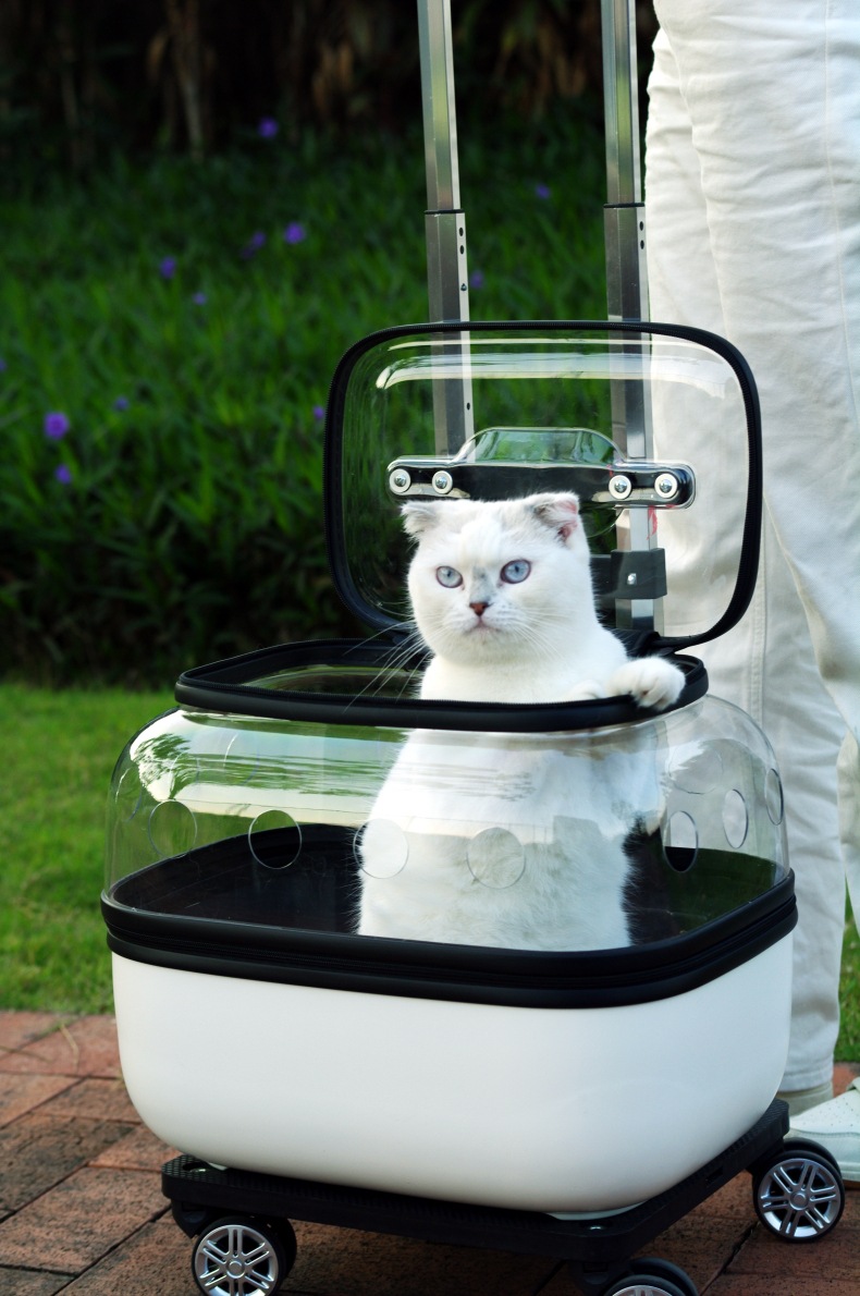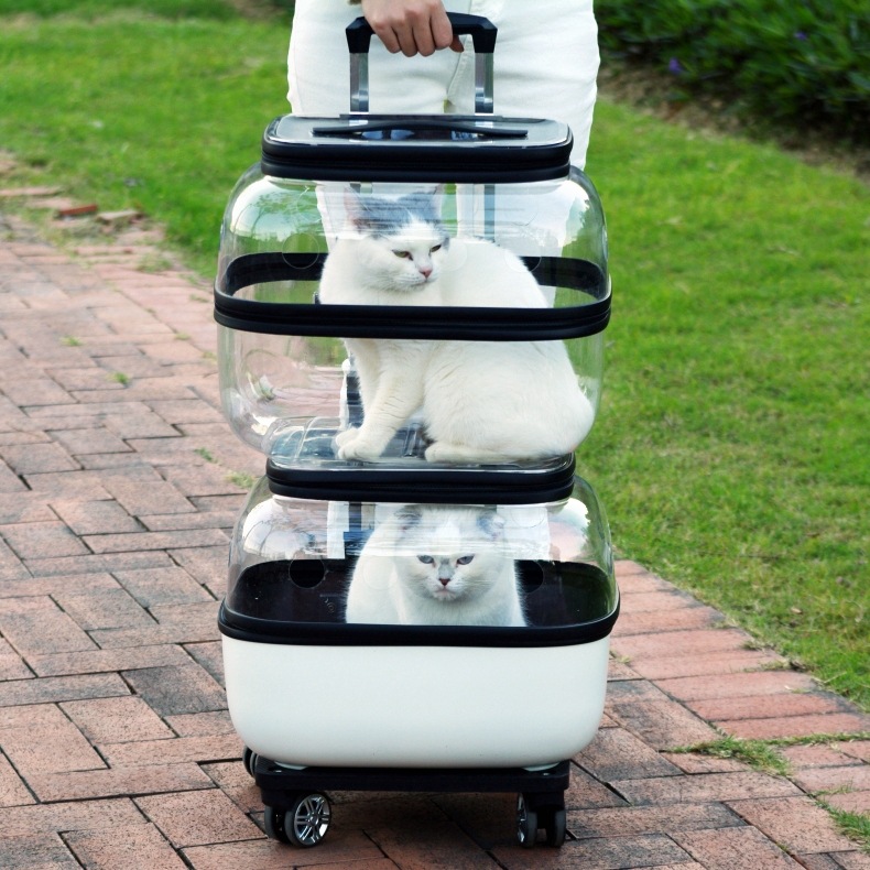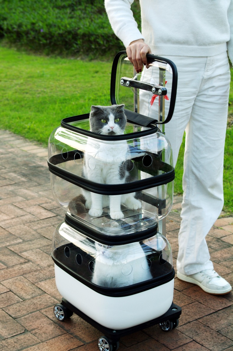 애완 동물 트롤리 케이스 더블 레이어 고양이 가방 휴대용 공간 캡슐 두 고양이 외출 수하물스토어 가기