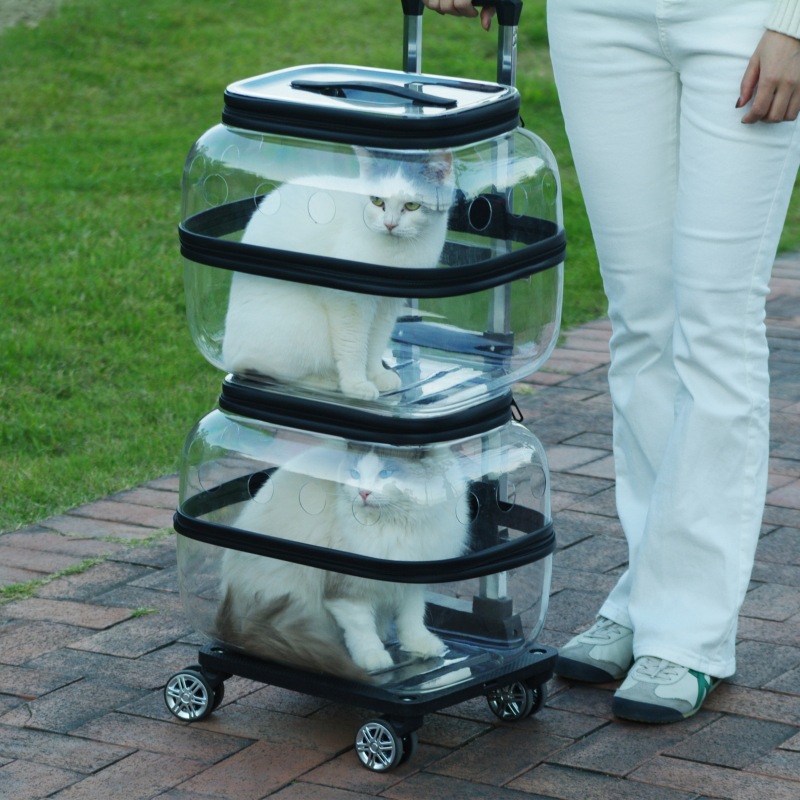 애완 동물 트롤리 케이스 더블 레이어 고양이 가방 휴대용 공간 캡슐 두 고양이 외출 수하물