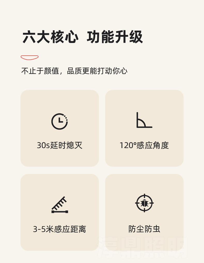 • 적외선 인체 유도, PP, 흰색, 220MM 12W, DOB, 백색광, 주 전원에 연결됨