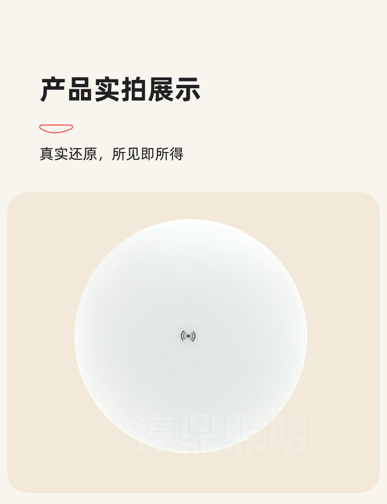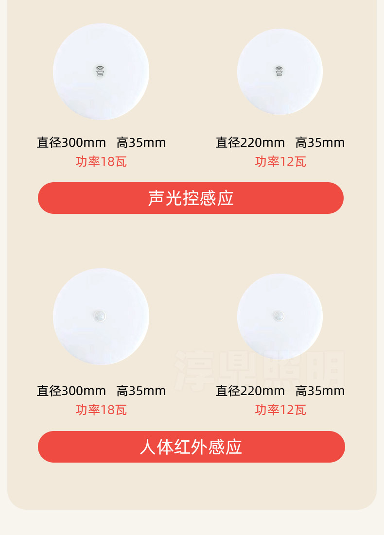 • 소리 및 조명 제어 유도, PP, 흰색, 220MM 12W, DOB, 백색광, 주 전원에 연결됨