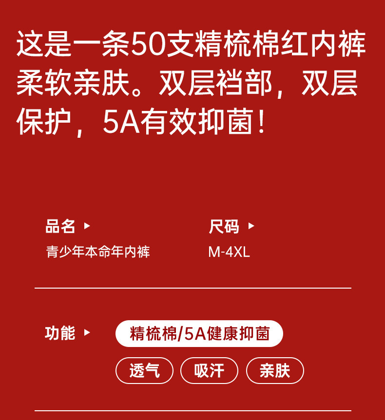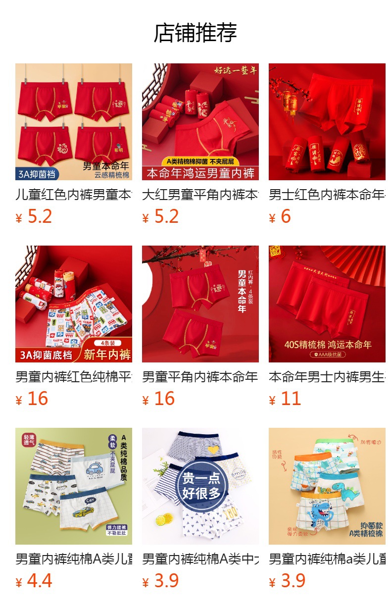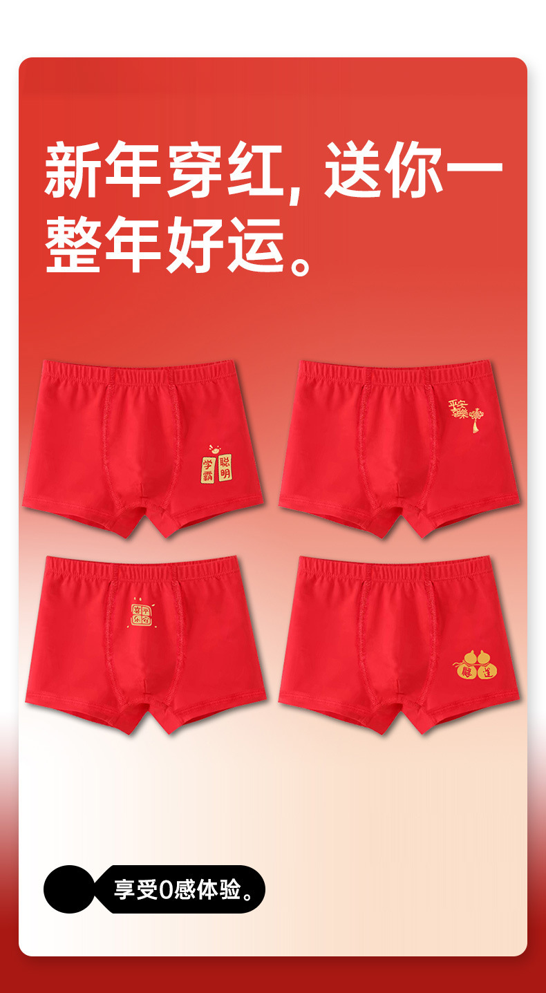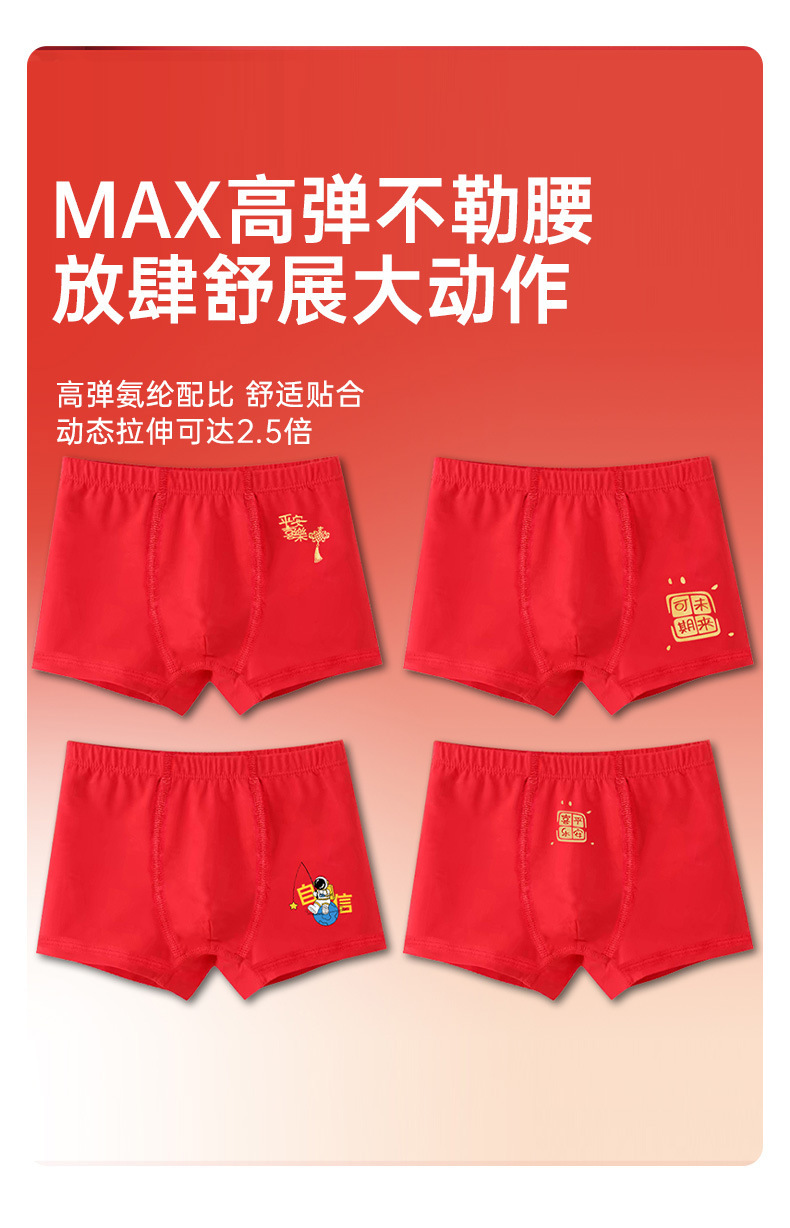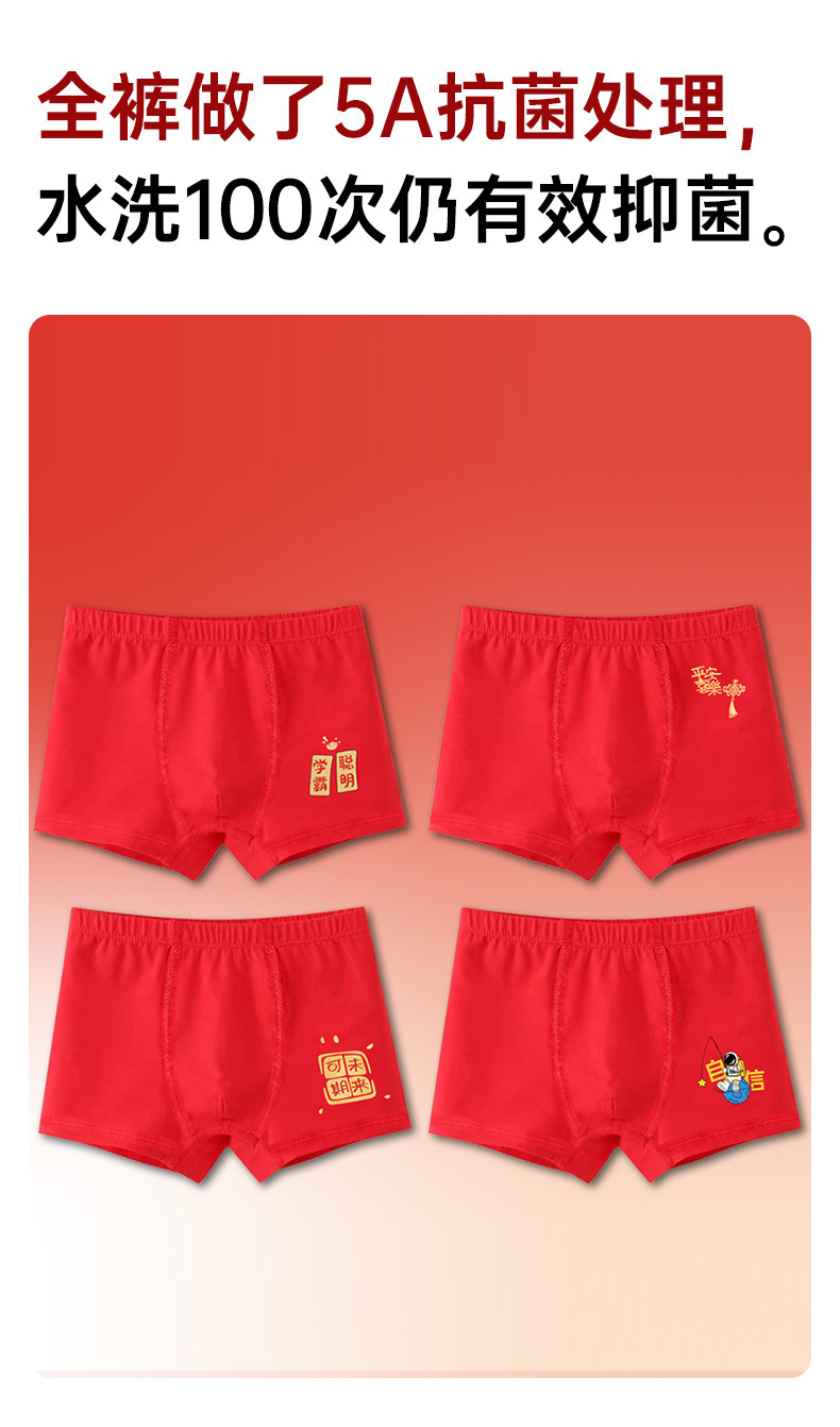 도매 신상 남아용 빨간색 속옷 순면 소년의 탄생년 말년(마년) 12세 사각팬티 아기 남아용 반바지스토어 가기