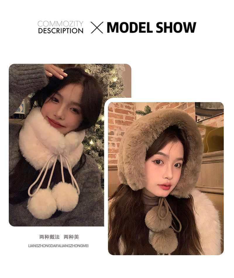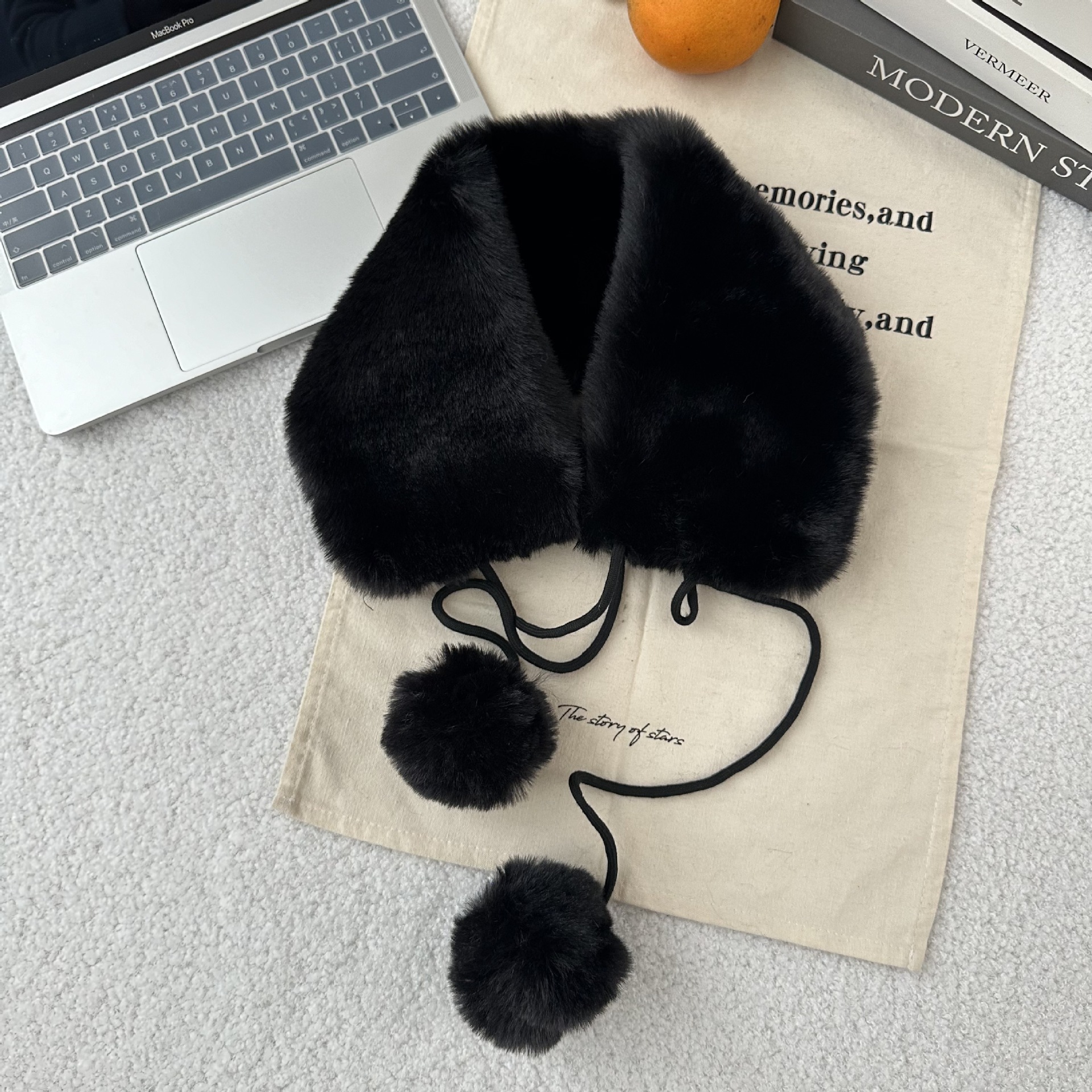 한국식 봉제 스카프 겨울 여자 귀여운 모피 공 모조 토끼 머리 따뜻한 목 보호 방화 스카프 올매치 울 목 스카프스토어 가기