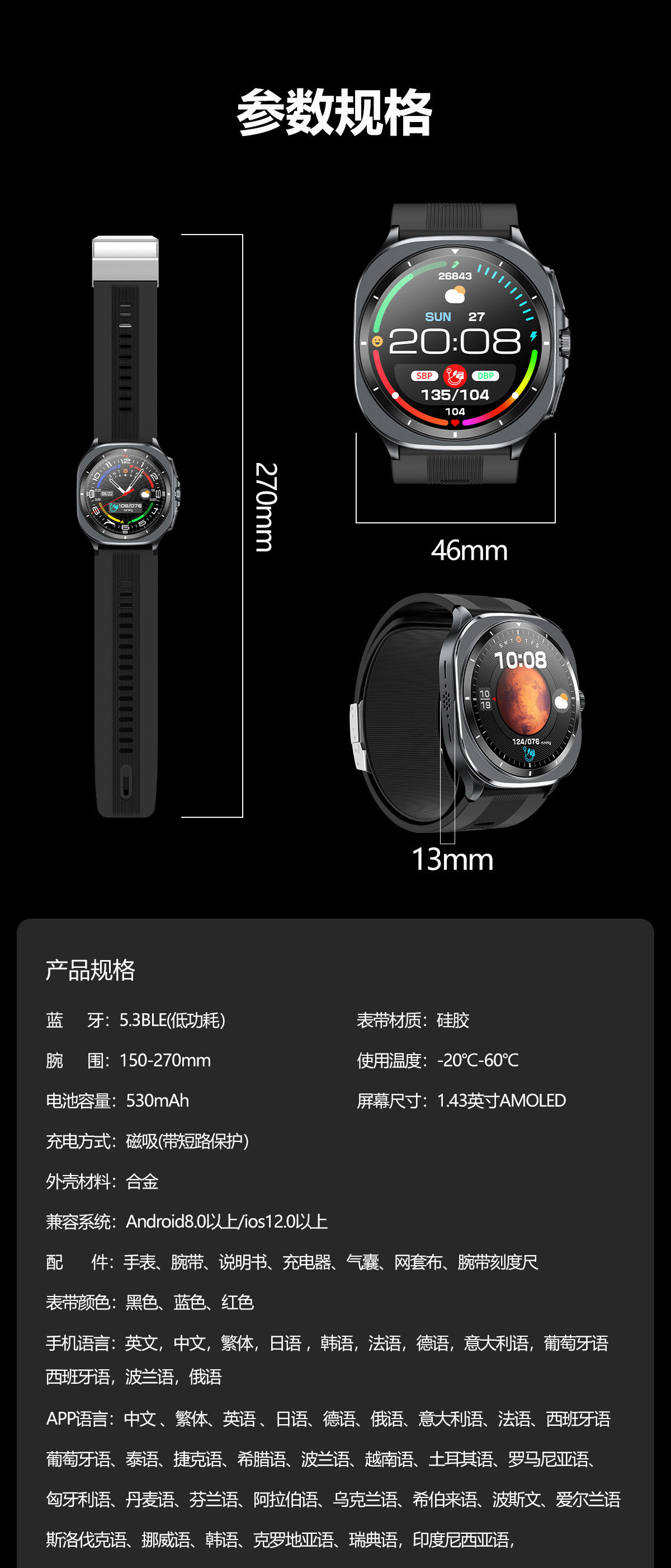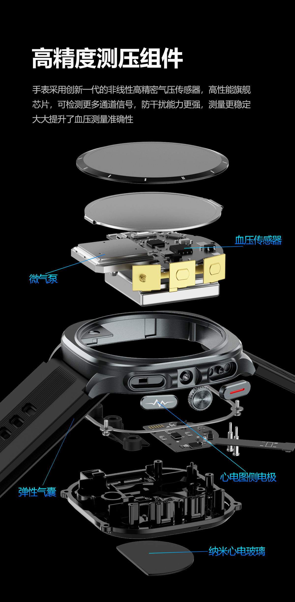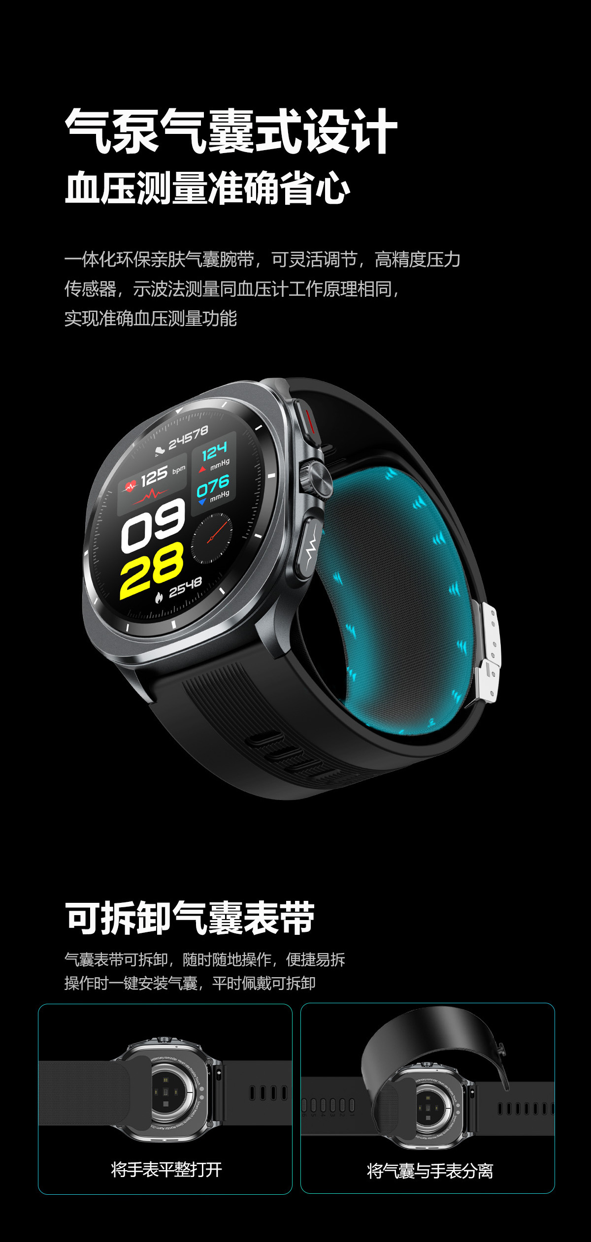 TK65 공기압 혈압 건강 스마트워치는 NFC, 알리페이, 원클릭 혈당 및 심박수 측정, 블루투스 기능을 지원합니다.