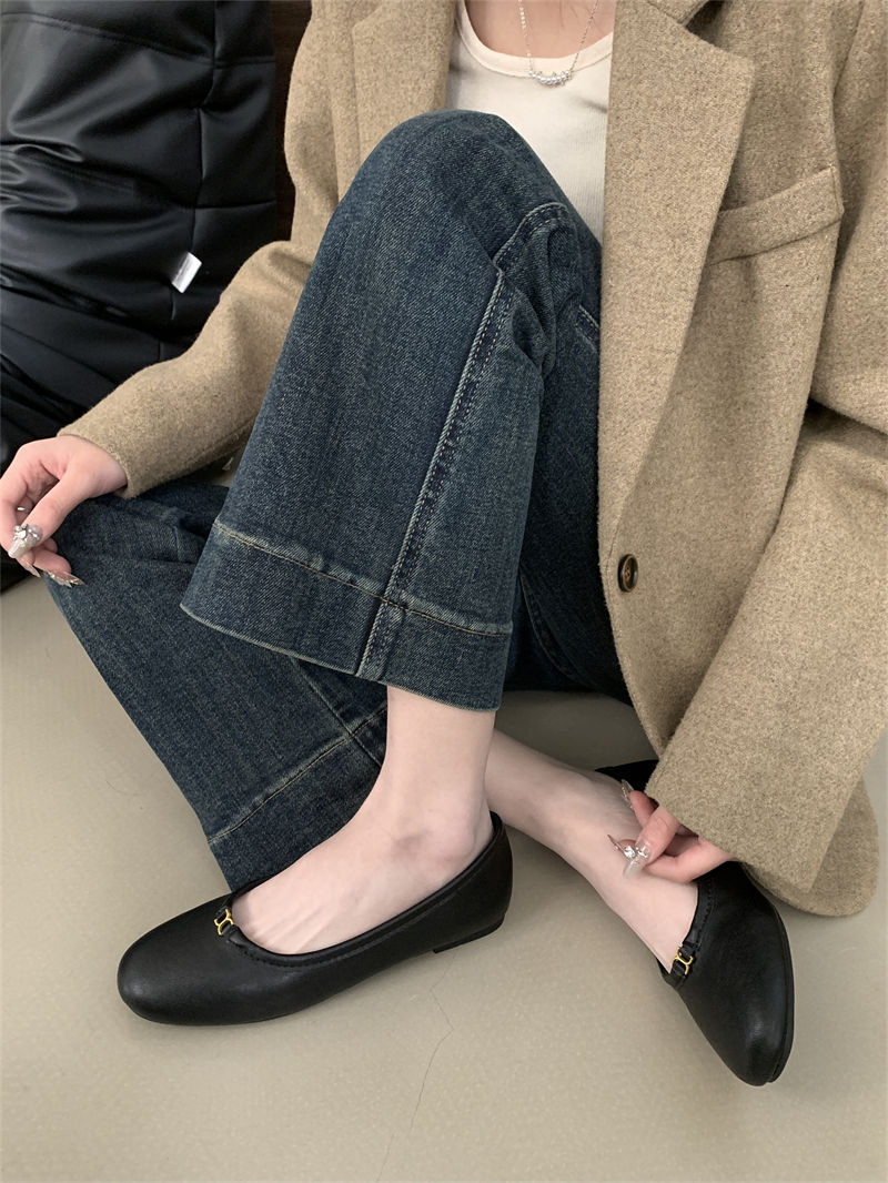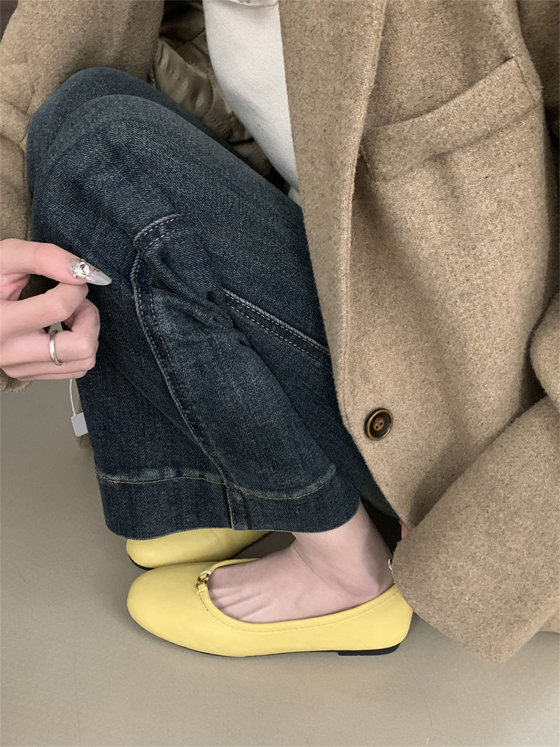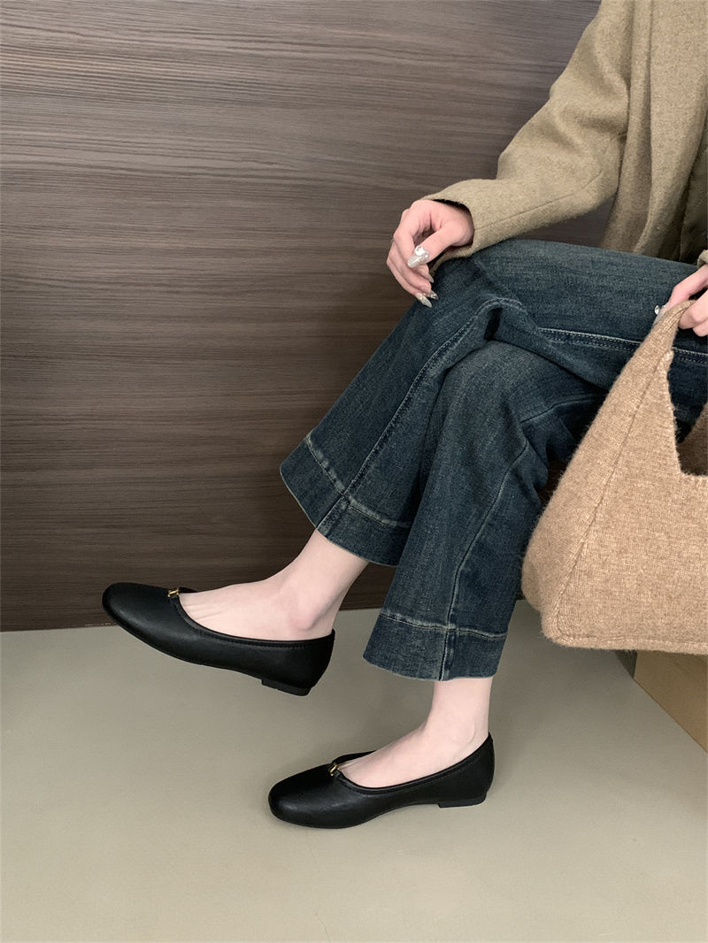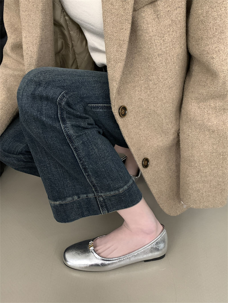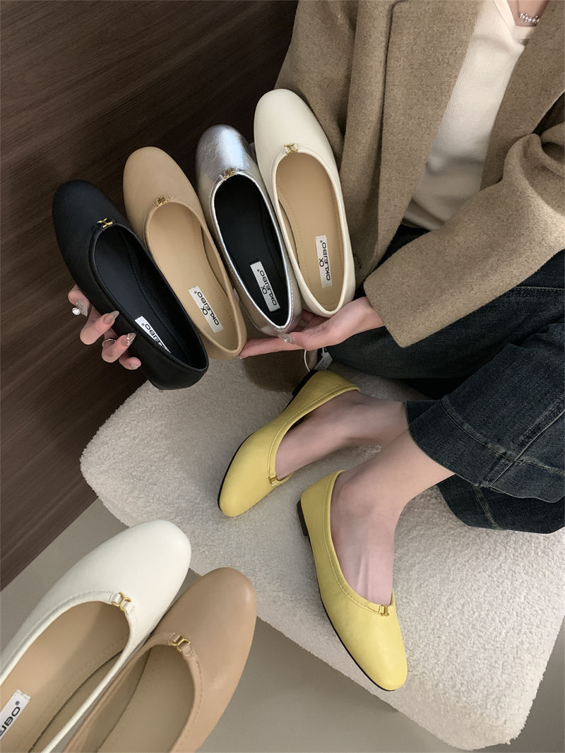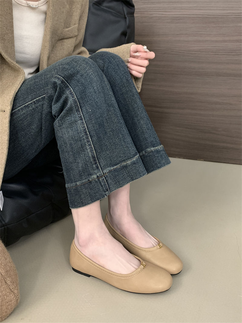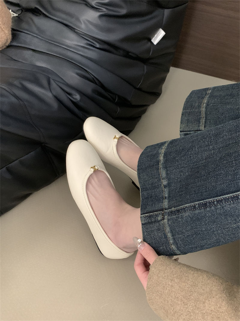 한국식 심플 플랫 싱글 레이어 신발 여성 신발 2025 봄과 가을 통근 올매치 슬립 온 라운드 발가락 얕은 입 밀크 신발스토어 가기