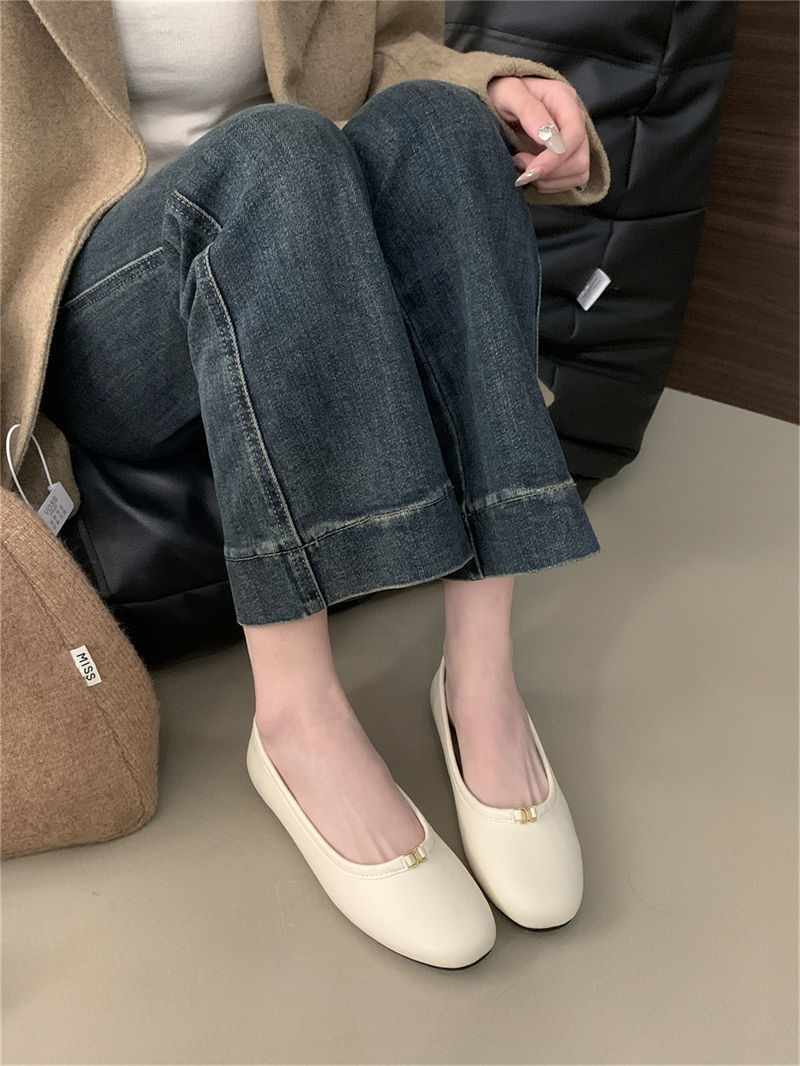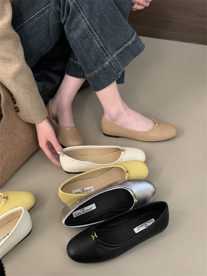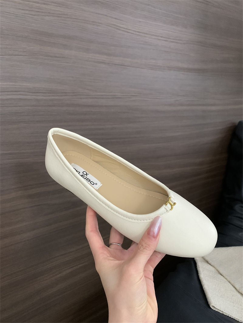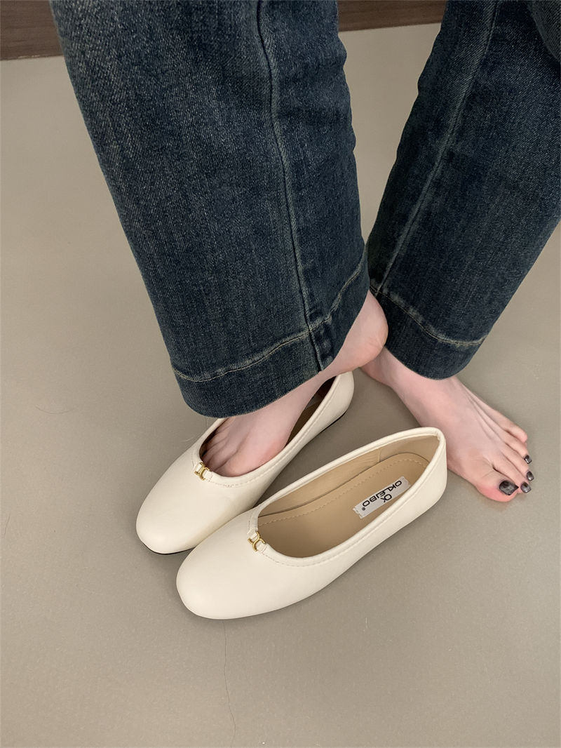 한국식 심플 플랫 싱글 레이어 신발 여성 신발 2025 봄과 가을 통근 올매치 슬립 온 라운드 발가락 얕은 입 밀크 신발