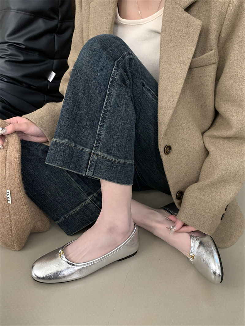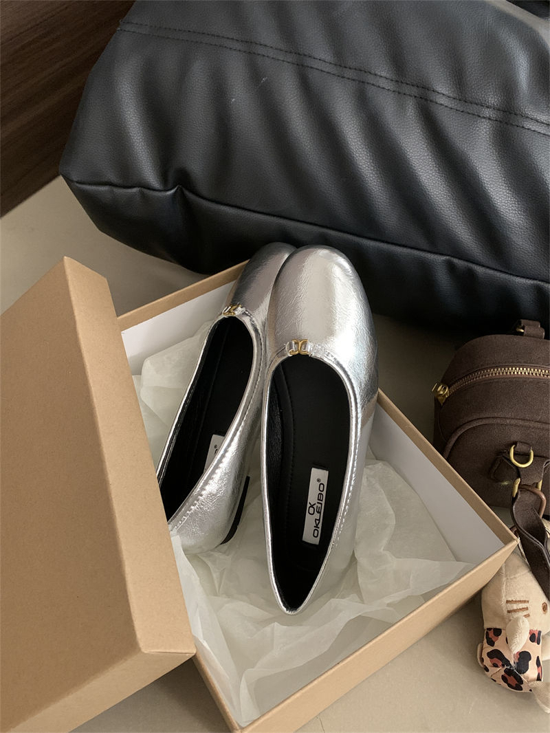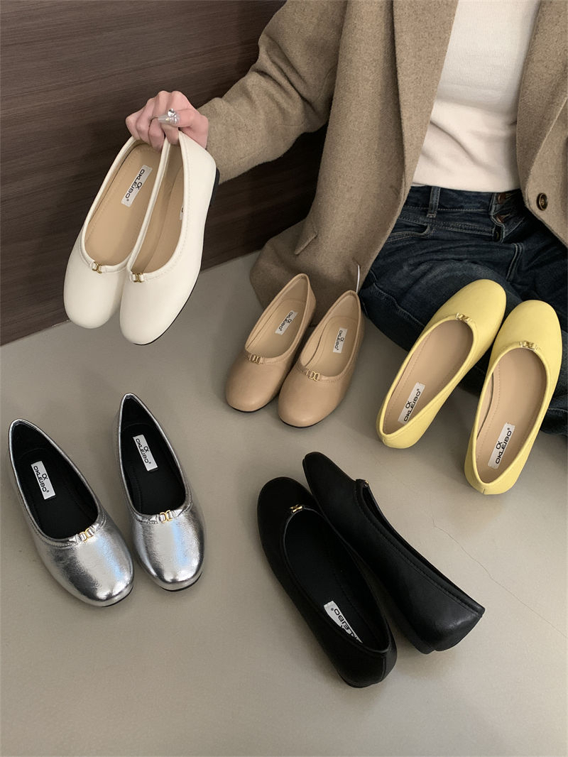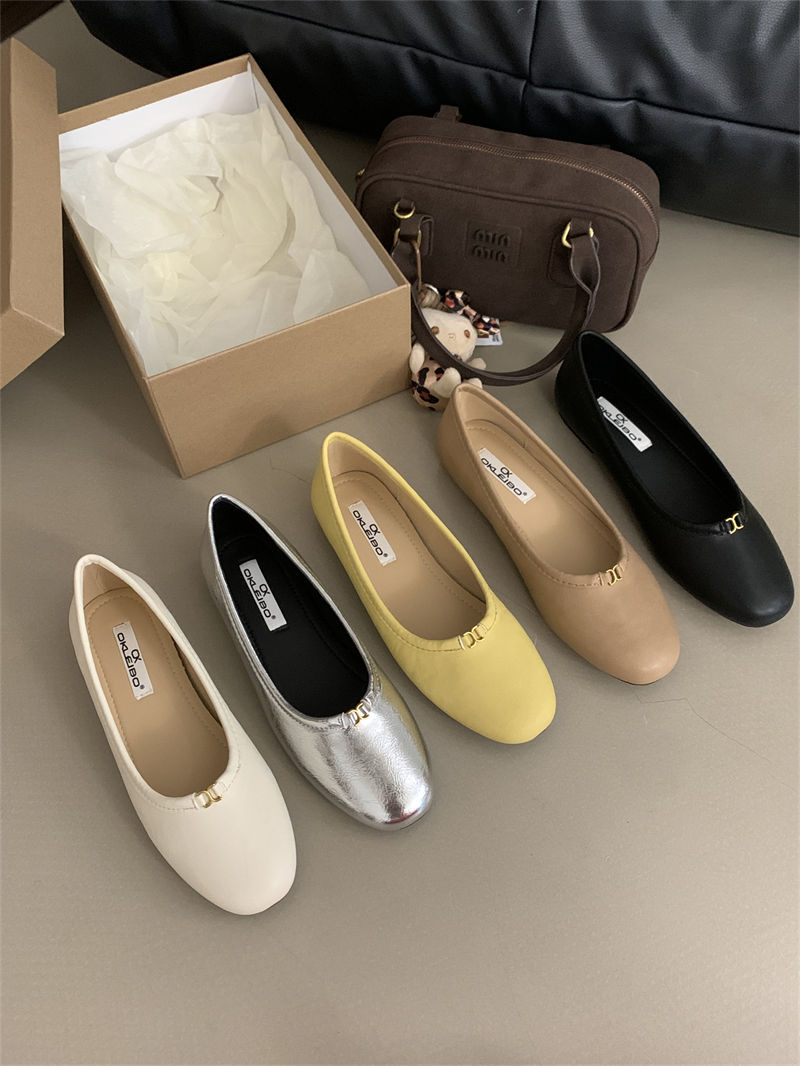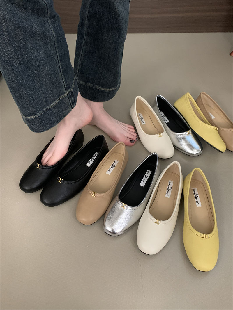 한국식 심플 플랫 싱글 레이어 신발 여성 신발 2025 봄과 가을 통근 올매치 슬립 온 라운드 발가락 얕은 입 밀크 신발