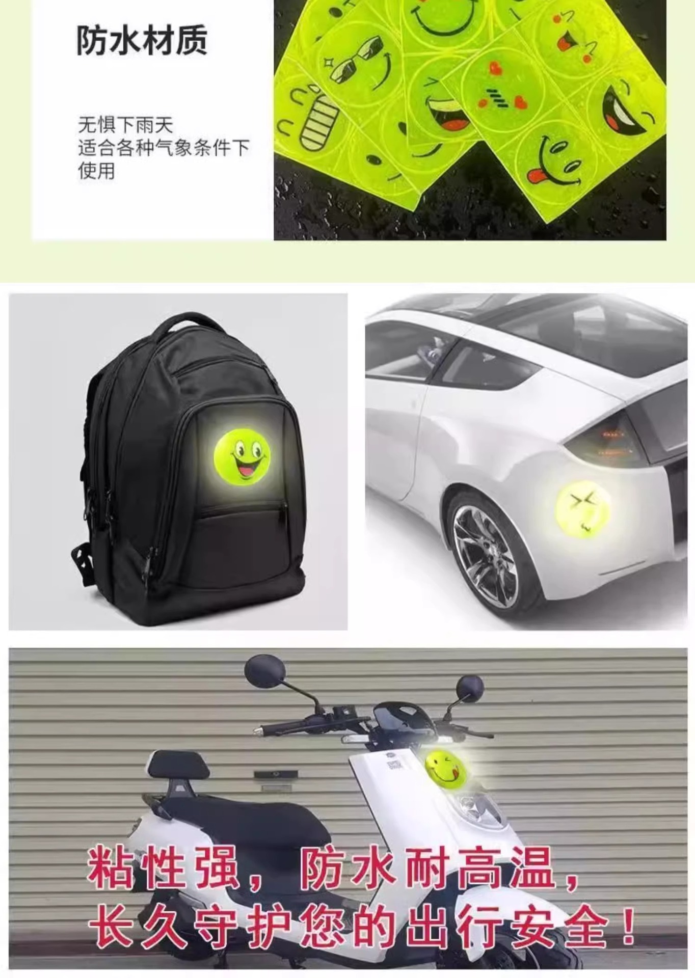 웃는 반사 스티커 학생 Schoolbag 스티커 방수 야간 여행 경고 로고 전기 자전거 장식 스티커