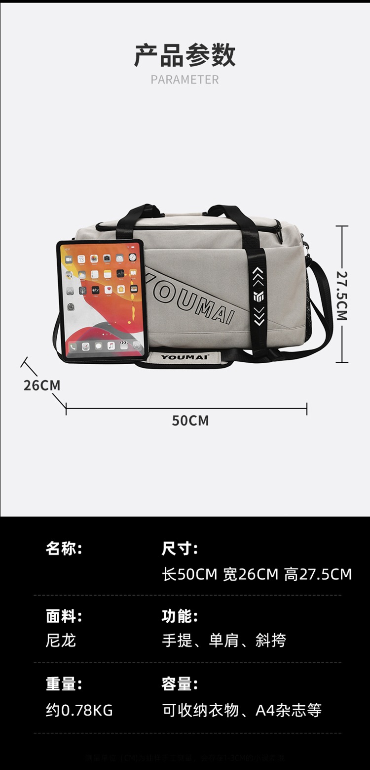 스포츠 피트니스 가방 남성용 건조하고 젖은 별도의 여성용 라이트 단거리 여행 가방 대용량 스포츠 가방 휴대용 수하물 가방