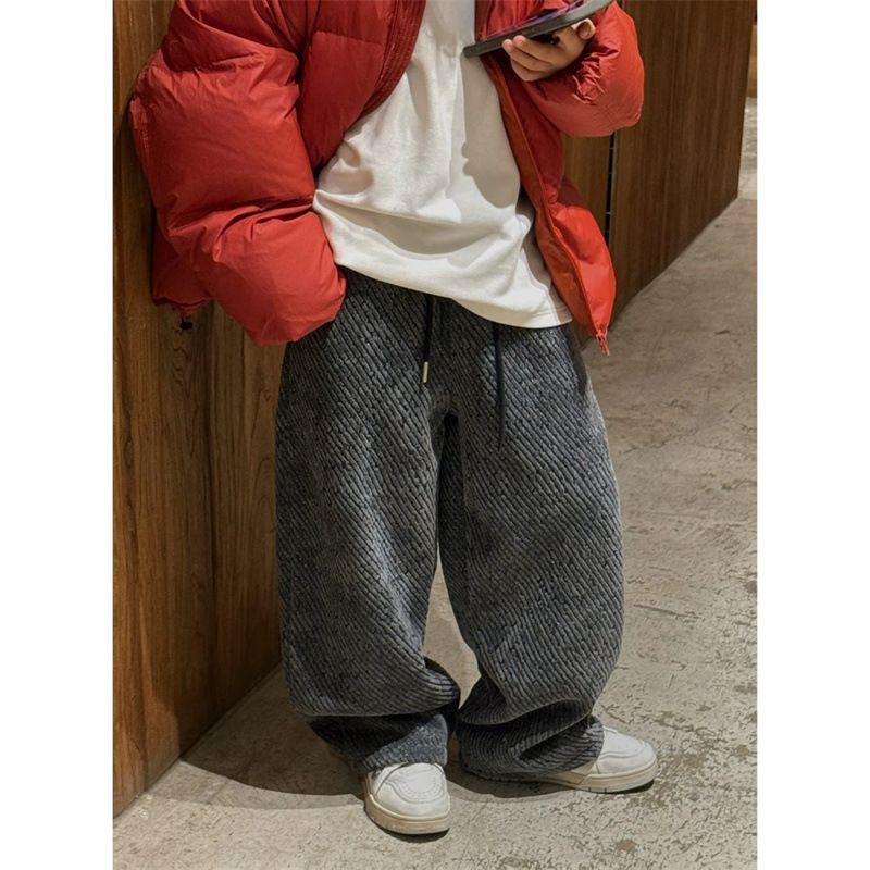 남아 니트 반짝이 캐주얼 팬츠 2025 가을 겨울 신상 중대형 아동용 플리스 안감 바지 어린이 루즈핏 스트레이트 팬츠스토어 가기
