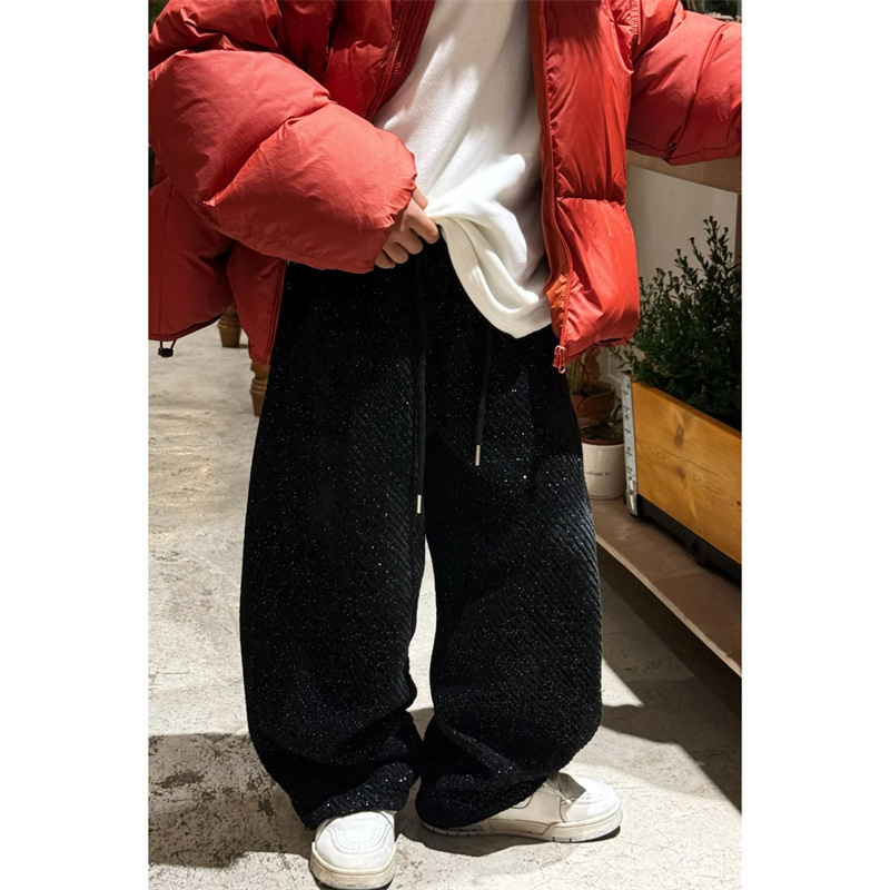 남아 니트 반짝이 캐주얼 팬츠 2025 가을 겨울 신상 중대형 아동용 플리스 안감 바지 어린이 루즈핏 스트레이트 팬츠