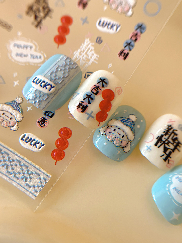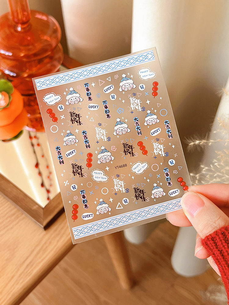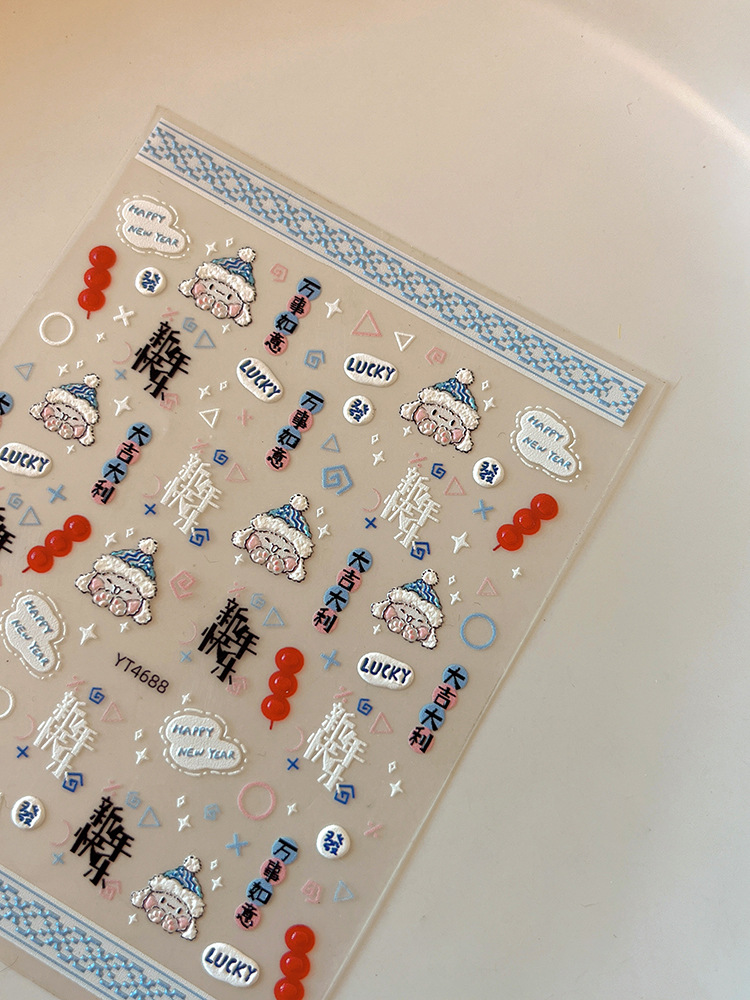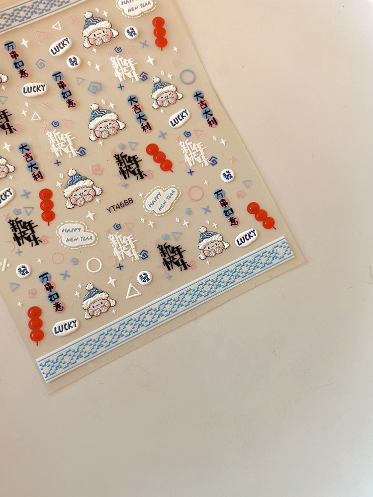 YITU 개미 그림 양각 블루 새해 네일 아트 스티커 설탕 코팅 된 haws 접착제 네일 장식 스티커 YT4688스토어 가기