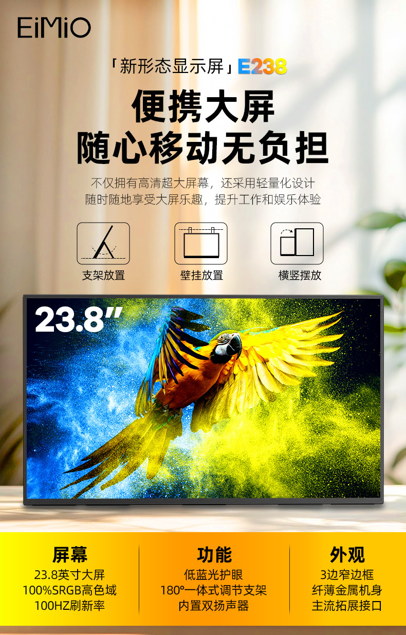 EIMIO 23.8인치 4K180HZ 무선 스크린 프로젝션 휴대용 모니터 사무실 게임 컴퓨터 확장 화면스토어 가기