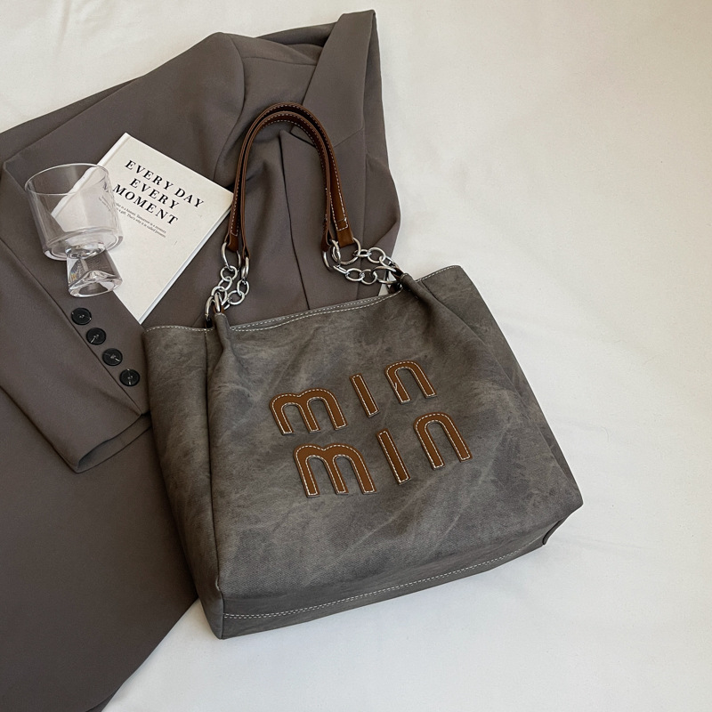 여성을위한 크로스 보더 대용량 캐주얼 레터 토트 백 2025 새로운 가을 패션 하이 엔드 대학생 숄더백
