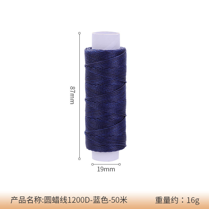 • 둥근 왁스 실 1200D-2868 파란색- 50m (작은 흰색 종이 튜브)