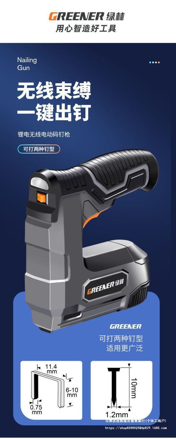 그린 우드 전기 네일 건 충전식 리튬 코드 네일 건 홈 장식 나무 문 목공 도구