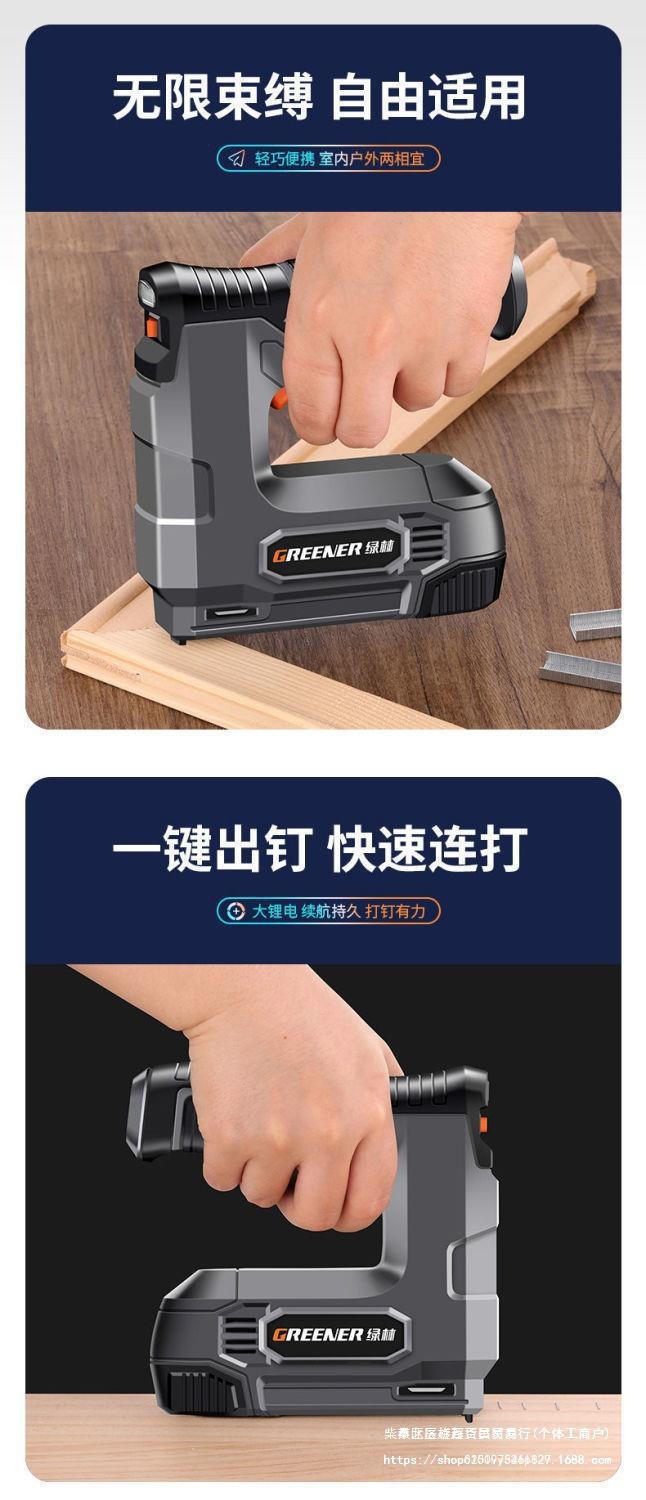 그린 우드 전기 네일 건 충전식 리튬 코드 네일 건 홈 장식 나무 문 목공 도구스토어 가기