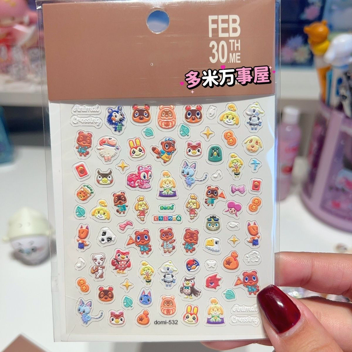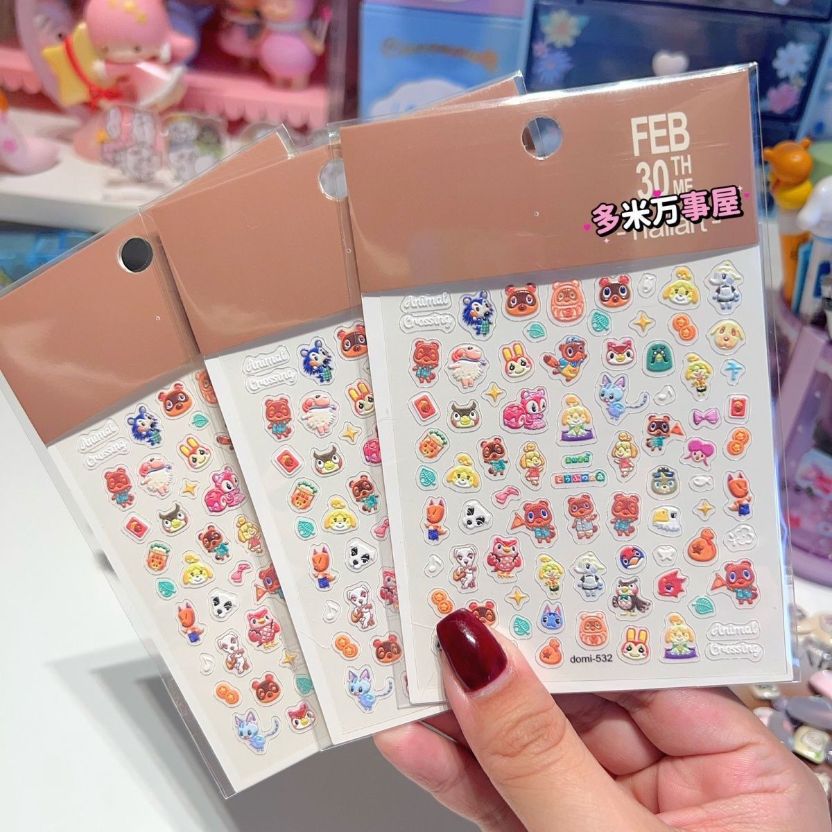 Xiaohongshu의 새로운 동물의 숲 네일 아트 스티커 동물의 숲 친구 클럽 마이크로 릴리프 스티커 Guka 장식 스티커스토어 가기