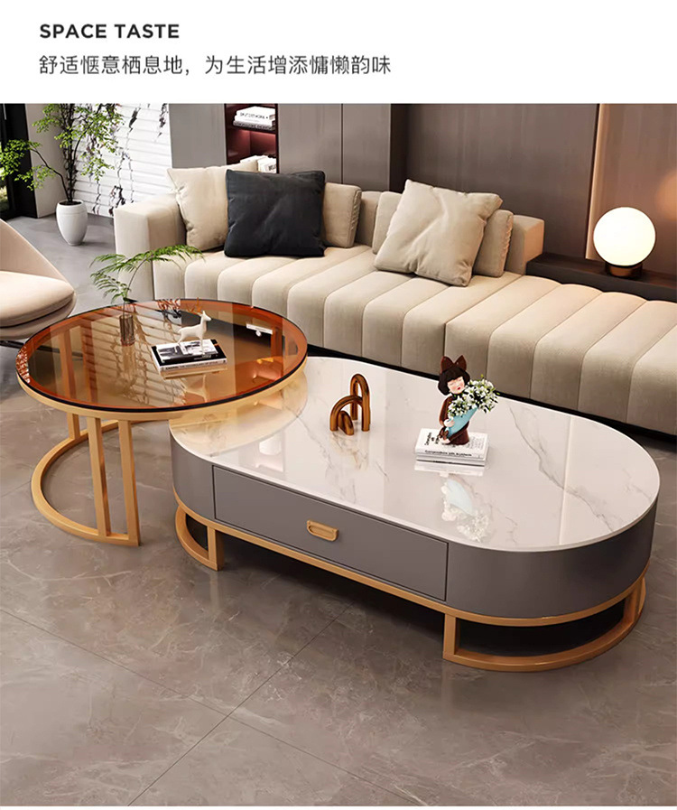 록 보드 커피 테이블 거실 홈 라이트 럭셔리 현대 간단한 티 테이블 2023 새로운 스타일 타원형 인터넷 유명 커피 테이블 작은 아파트스토어 가기