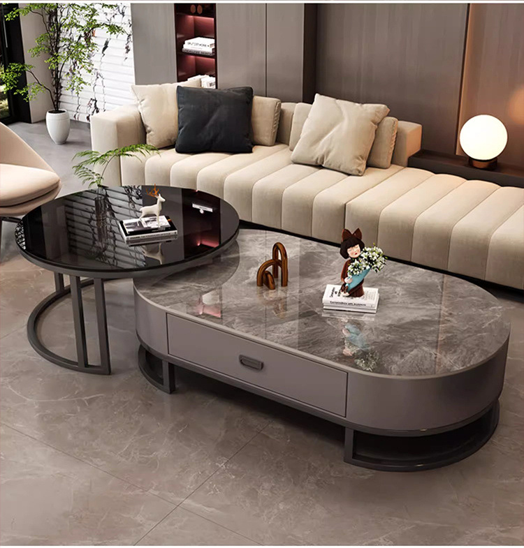 록 보드 커피 테이블 거실 홈 라이트 럭셔리 현대 간단한 티 테이블 2023 새로운 스타일 타원형 인터넷 유명 커피 테이블 작은 아파트