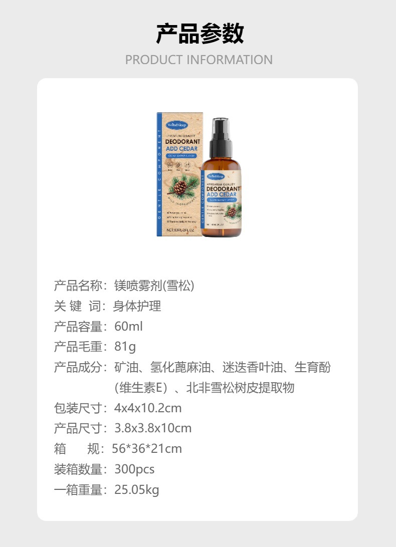 목재 마그네슘 스프레이 삼나무 보습 편안한 바디 향수 케어 야간 수면 스프레이