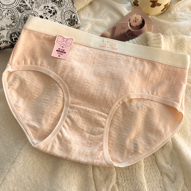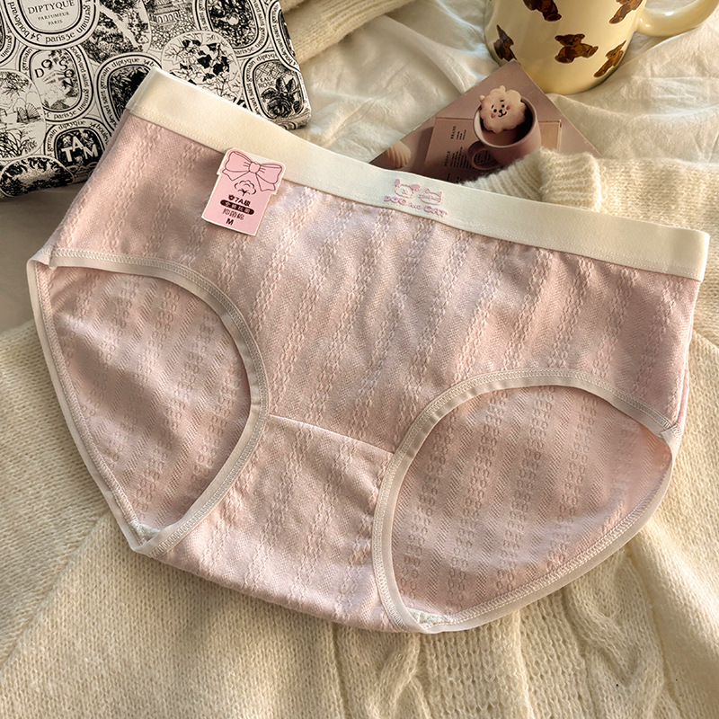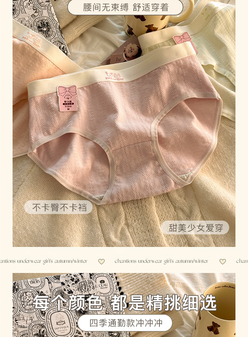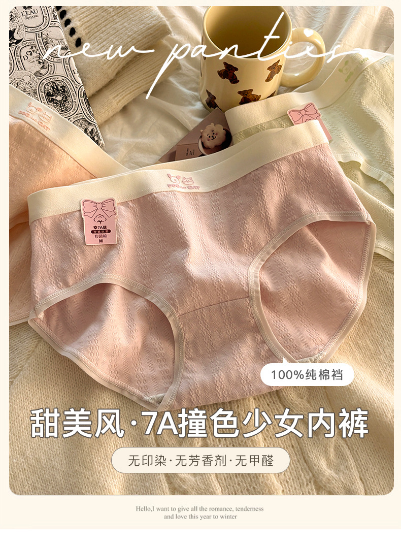 소녀의 맞춤형 달콤한 면 항균 속옷 학생 순면 니트 중간 허리 방한 팬티 ins 스타일