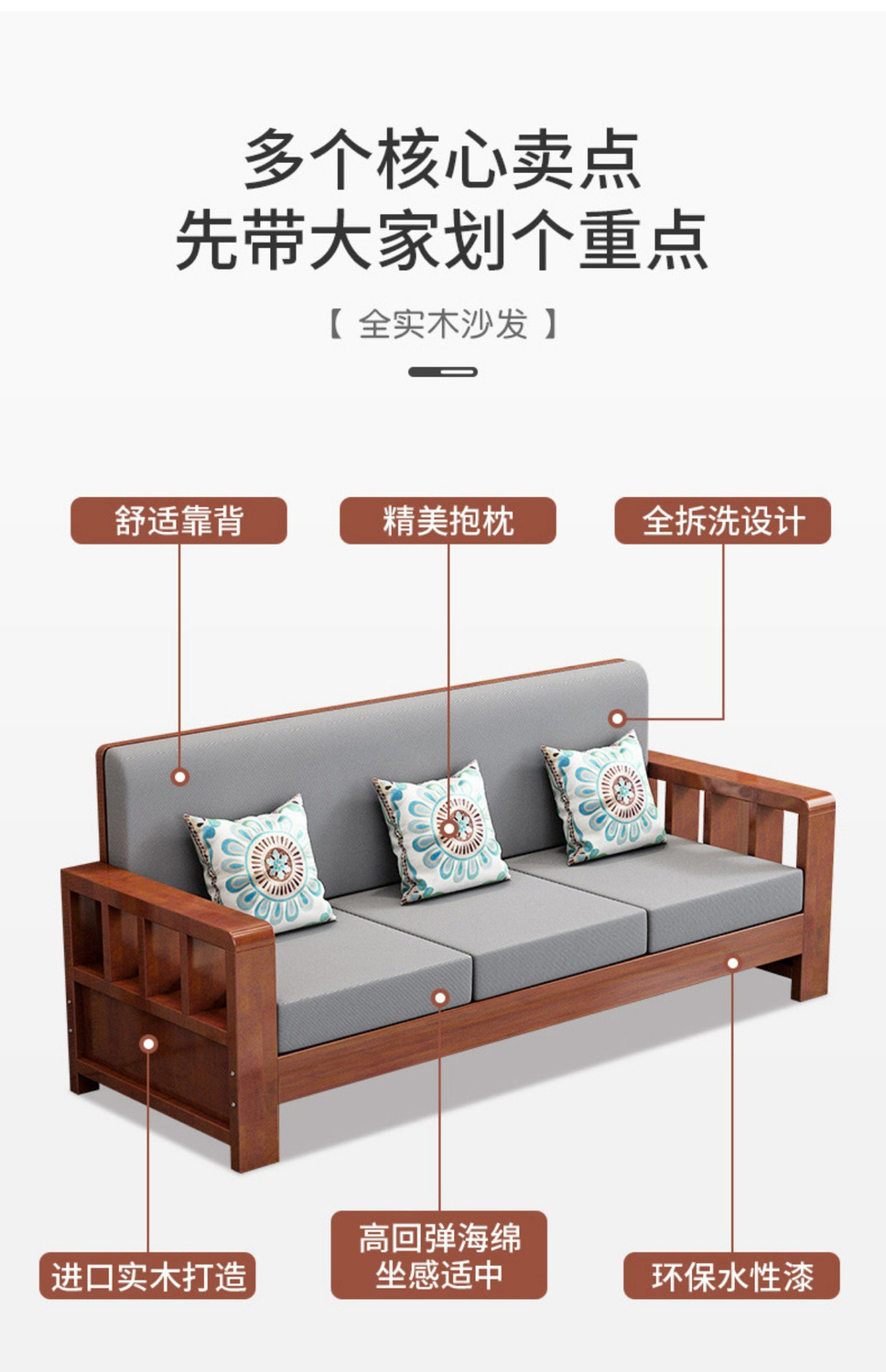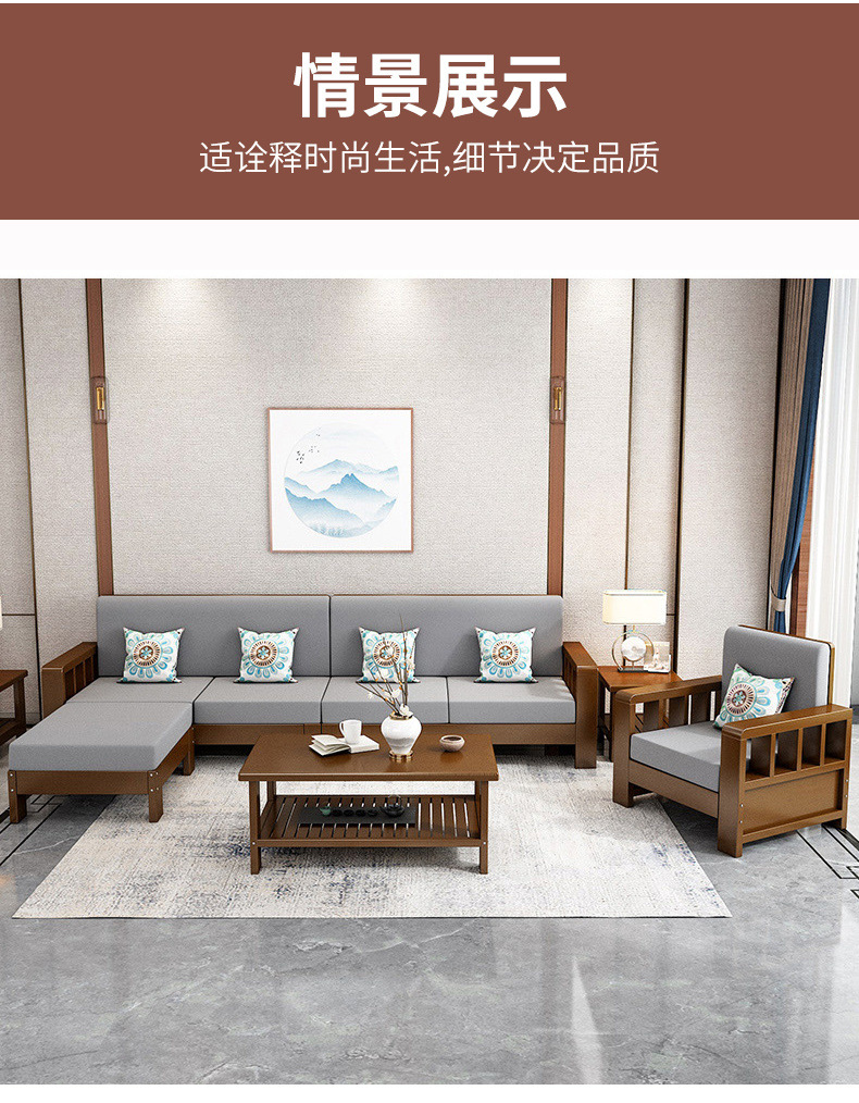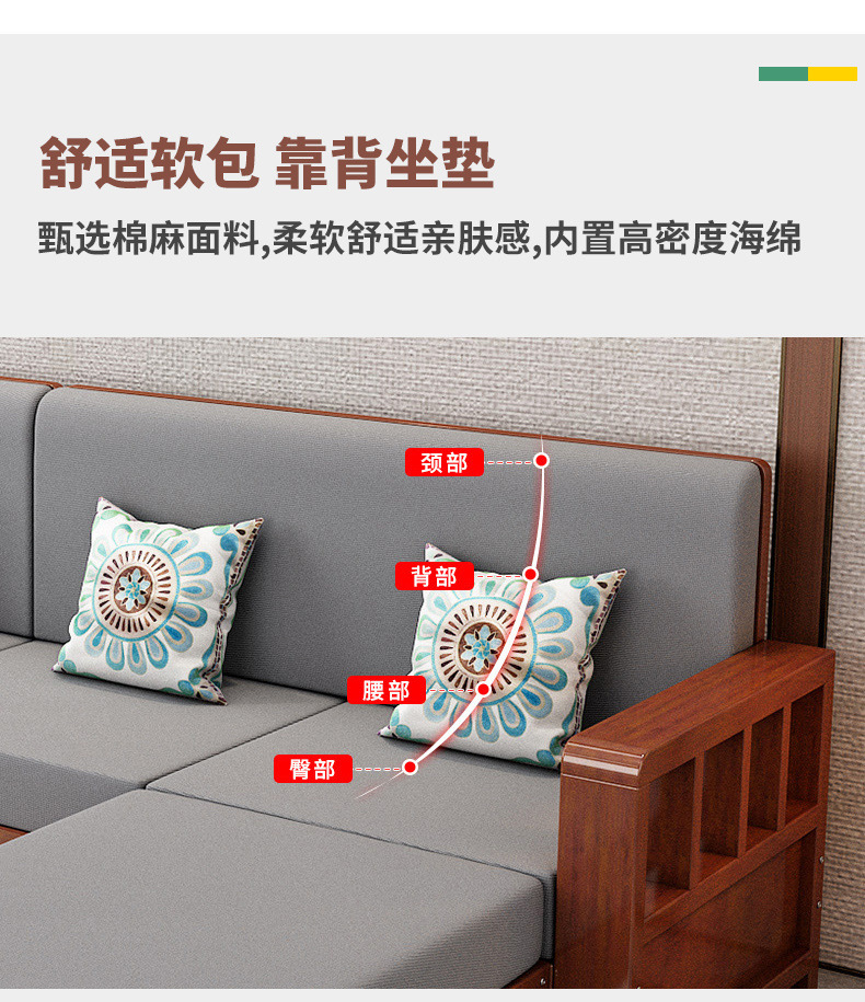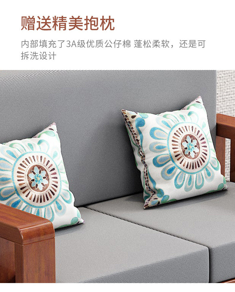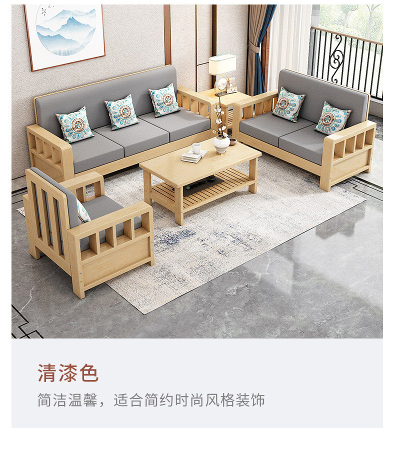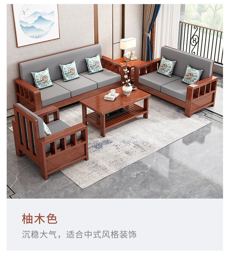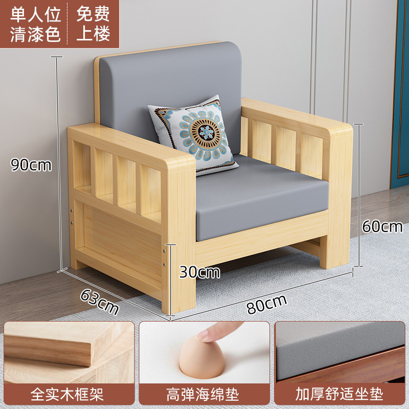 솔리드 우드 소파 콤비네이션 새로운 중국 스타일 가정용 거실 작은 아파트 스트레이트 로우 3 인승 간단한 경제적인 로그 소파스토어 가기
