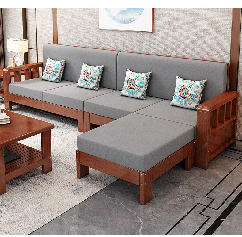 솔리드 우드 소파 콤비네이션 새로운 중국 스타일 가정용 거실 작은 아파트 스트레이트 로우 3 인승 간단한 경제적인 로그 소파