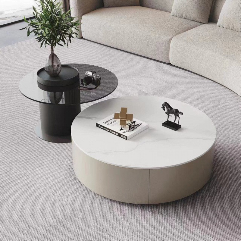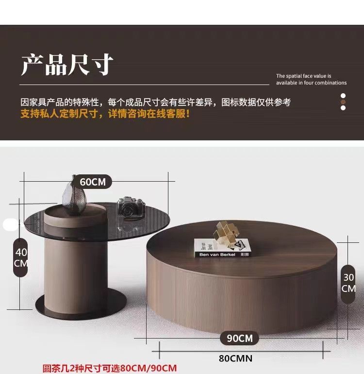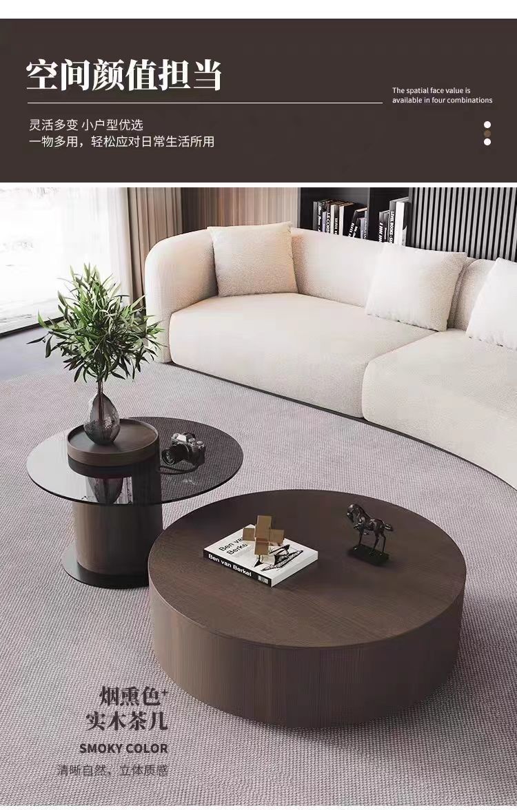 이탈리아 스타일 미니멀리스트 솔리드 우드 라운드 커피 테이블 홈 라이트 럭셔리 작은 아파트 차 테이블 인터넷 유명한 간단한 현대 TV 캐비닛 조합