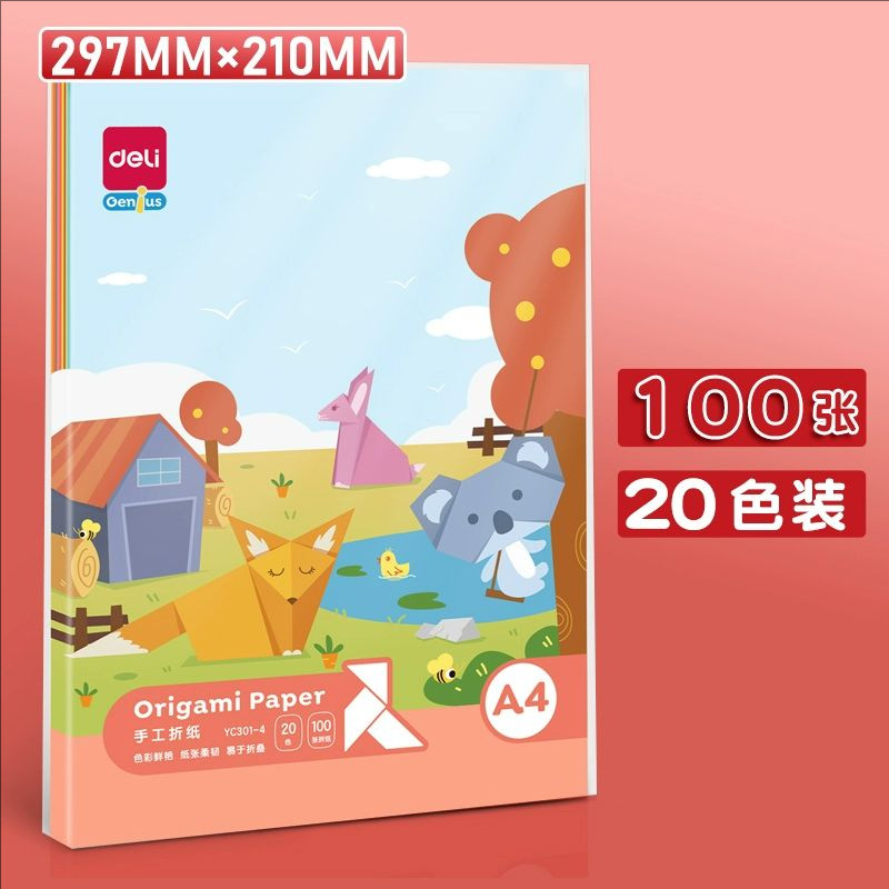 델리 20 색 종이 접기 수제 어린이 컬러 종이 초등학교 학생 수제 종이 접기 유치원 특수 종이 기중기 종이 접기 a4