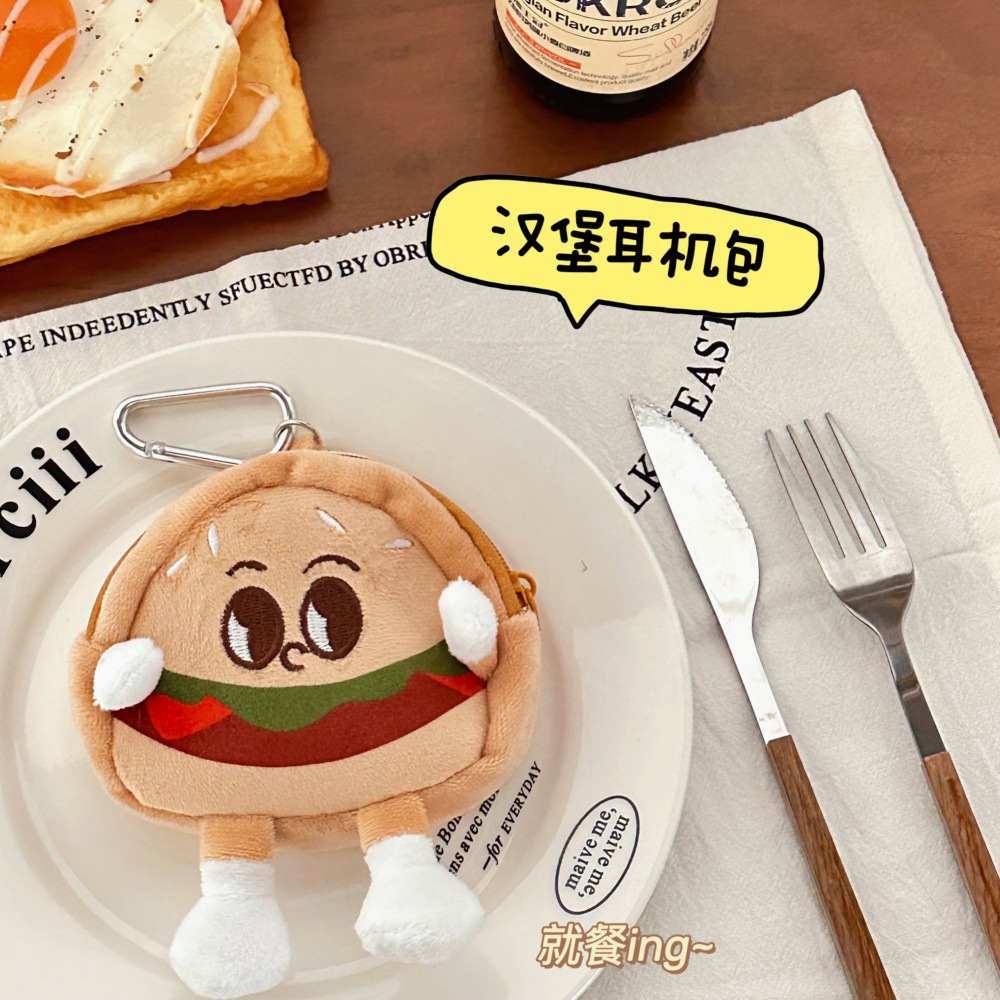 창조적 인 귀여운 인형 햄버거 동전 지갑 펜던트 인형 소녀 헤드셋 작은 보석 보관 가방 배낭 작은 매달려 장식품