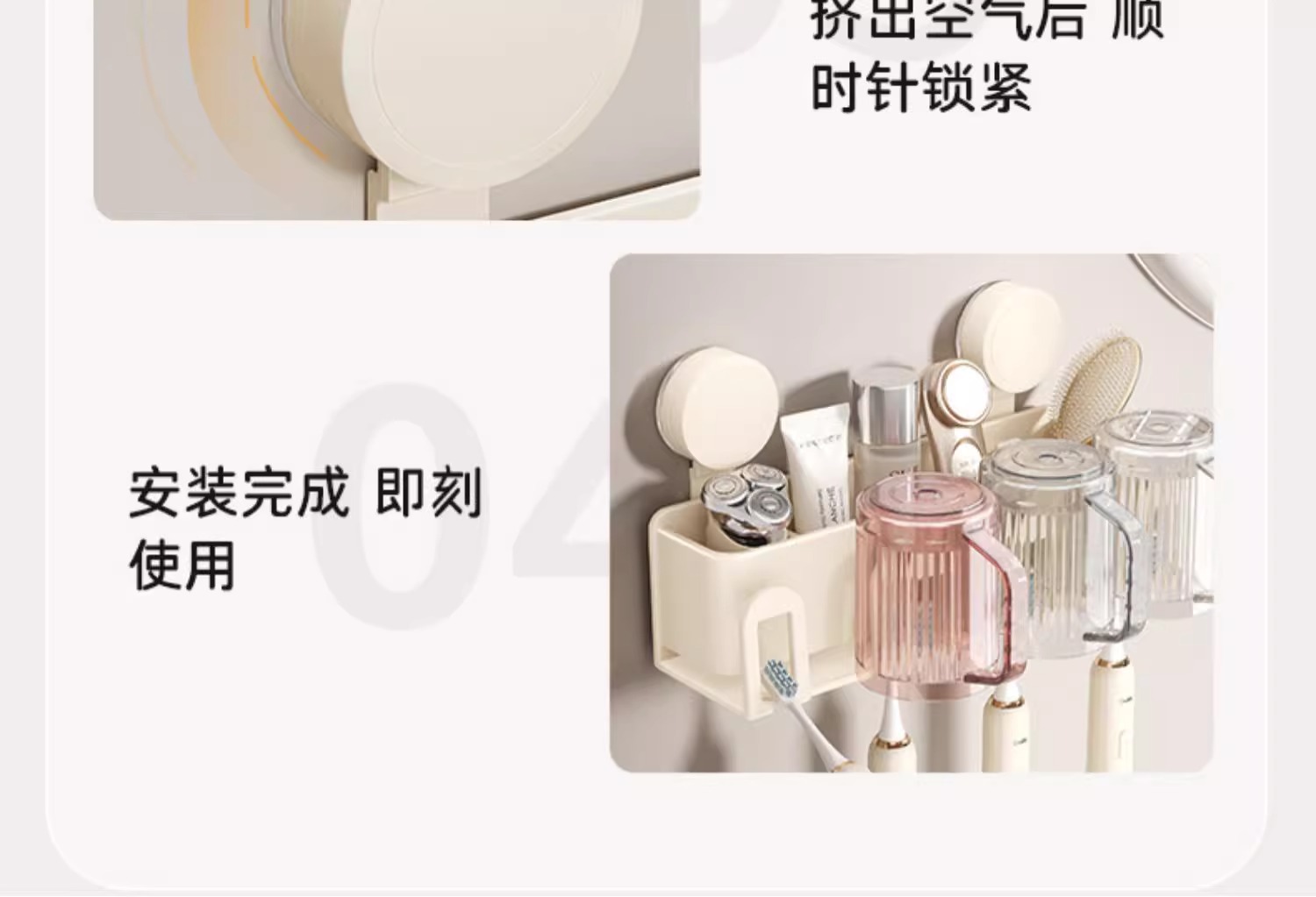 • 흡착컵 설치 - 유백색 4인용 칫솔꽂이(플라스틱 컵 4개 포함)