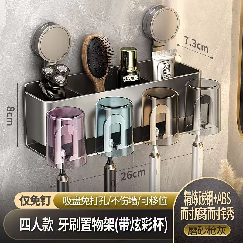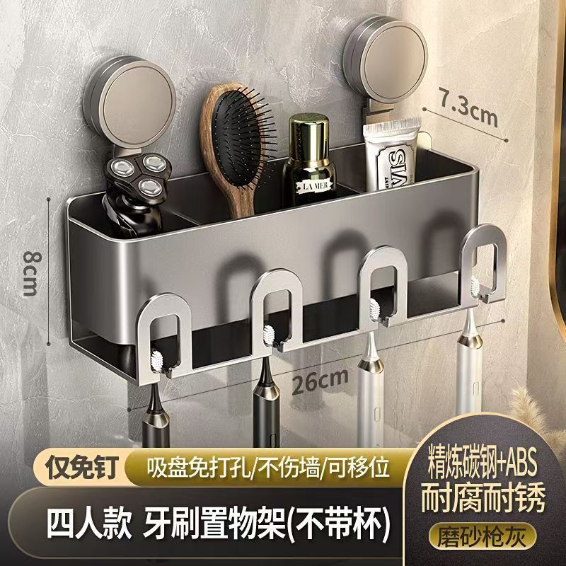 • 흡착컵 설치건그레이 4인용 칫솔홀더