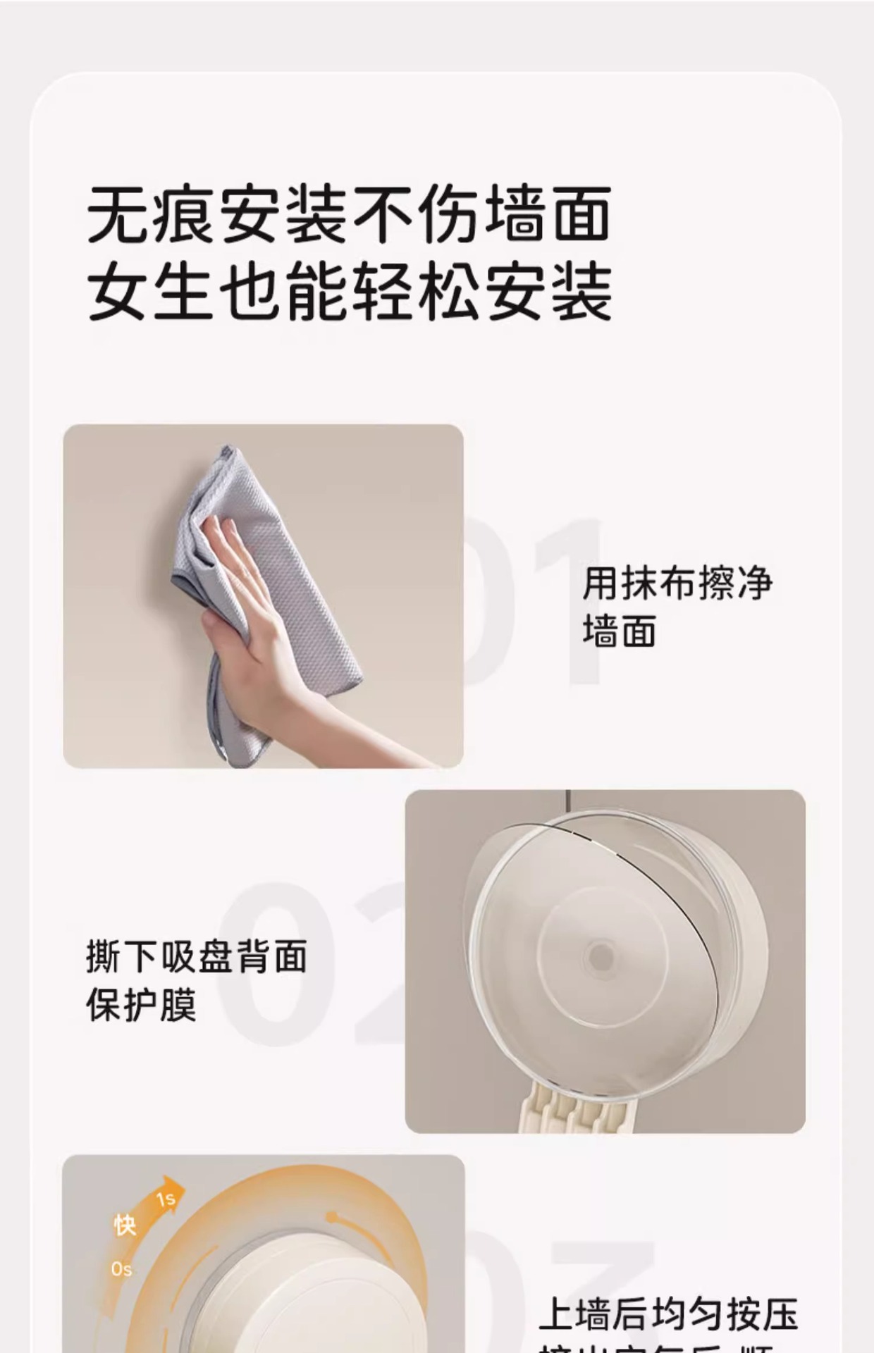 • 흡착컵 설치 - 유백색 3인용 칫솔꽂이(플라스틱 컵 3개 포함)
