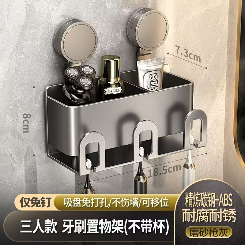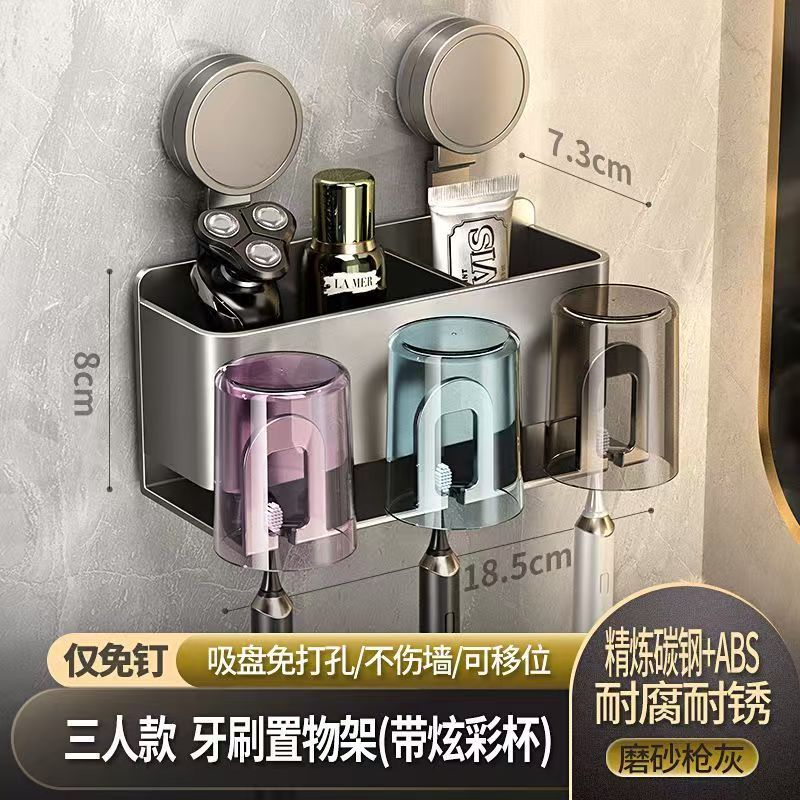 • 흡착컵 설치건그레이 3인용 칫솔홀더