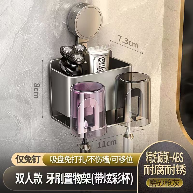 • 흡착컵 설치건그레이 2인용 칫솔홀더