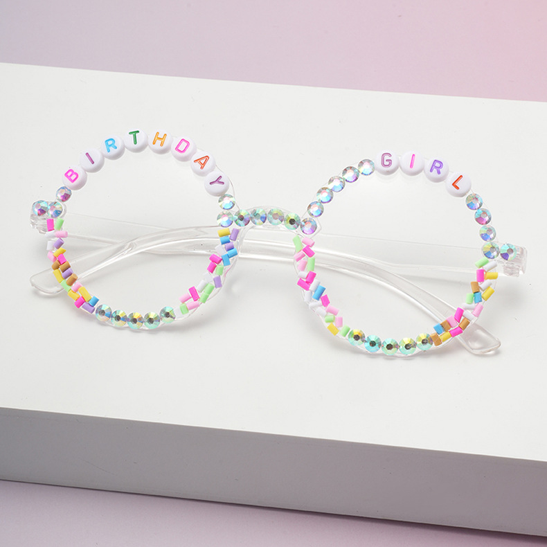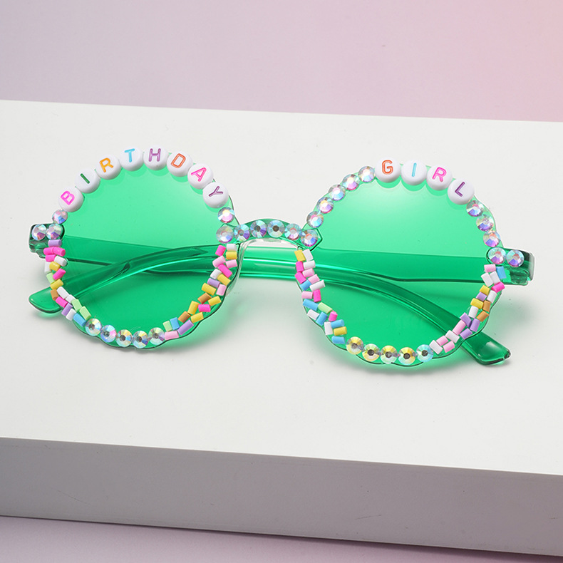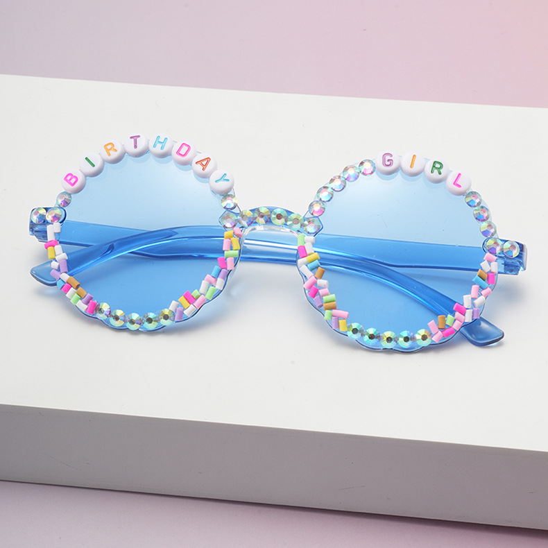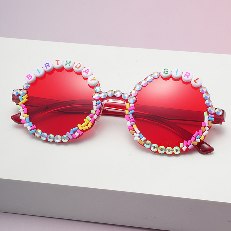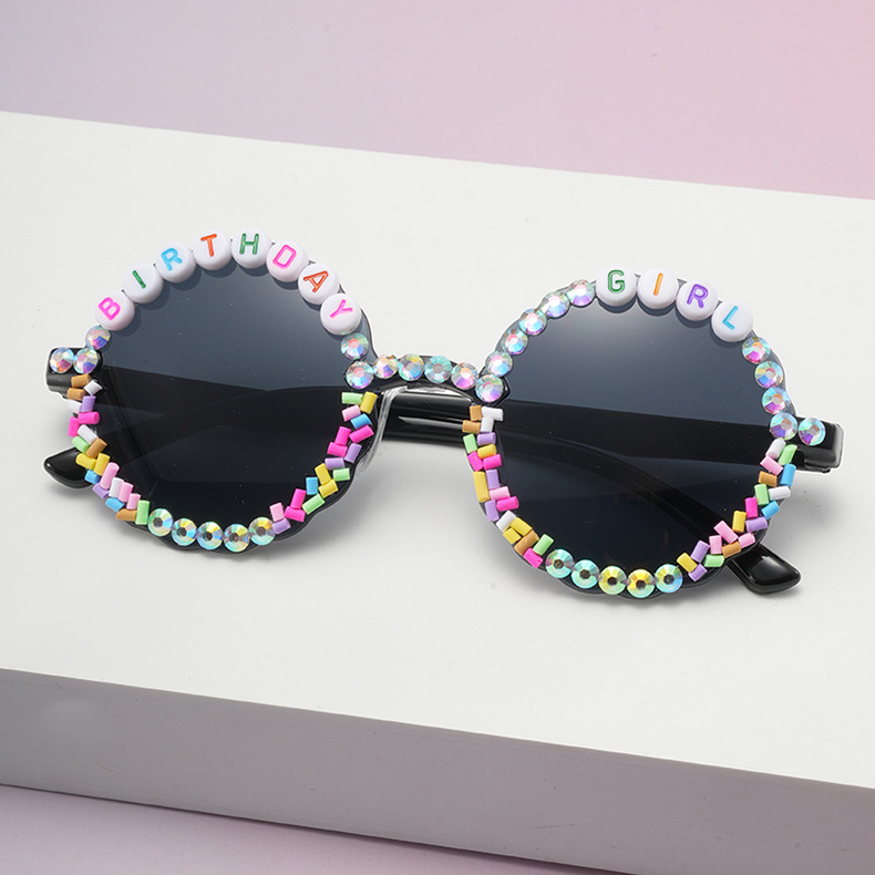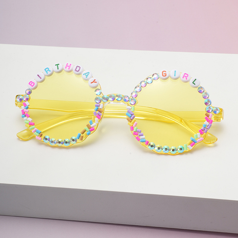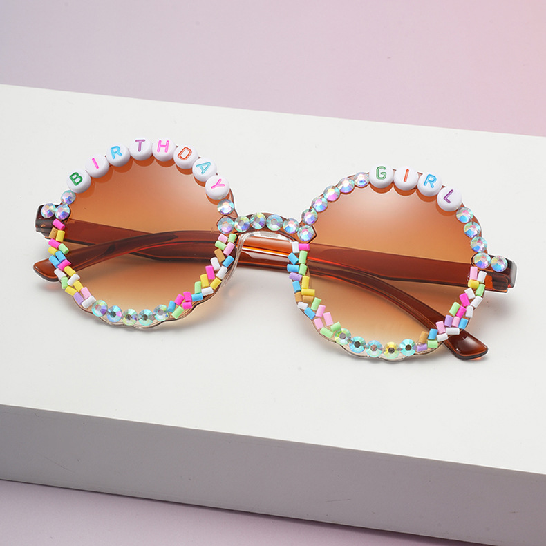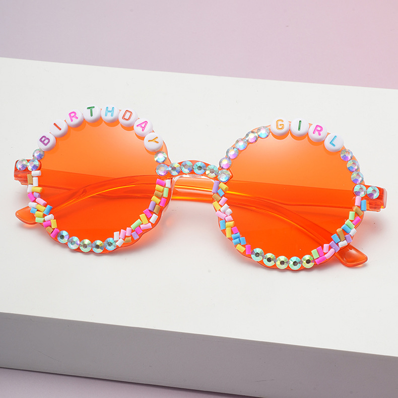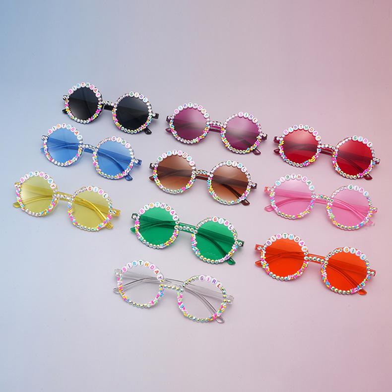 새로운 원피스 컬러 어린이 선글라스 맞춤형 아기 선글라스 라운드 프레임 장식 캔디 파티 키즈 안경