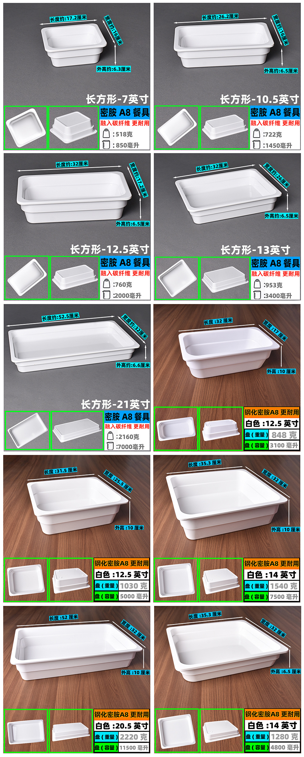 • 백옥*두꺼워짐- 13inch *낮은 스타일-강화 멜라민 A8
