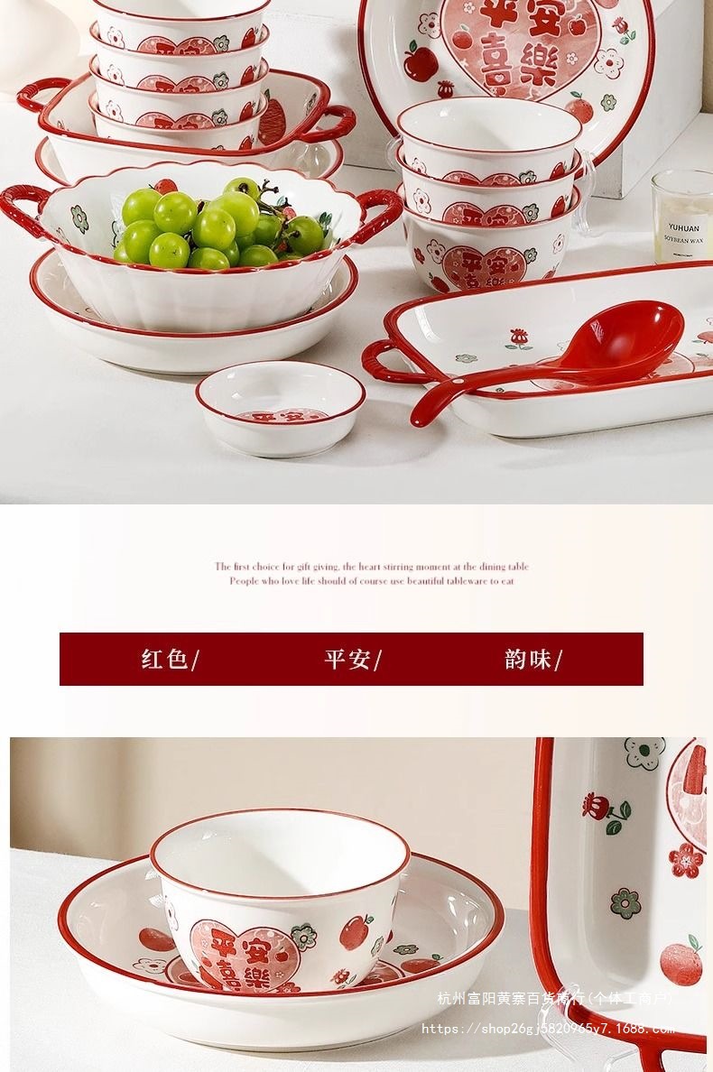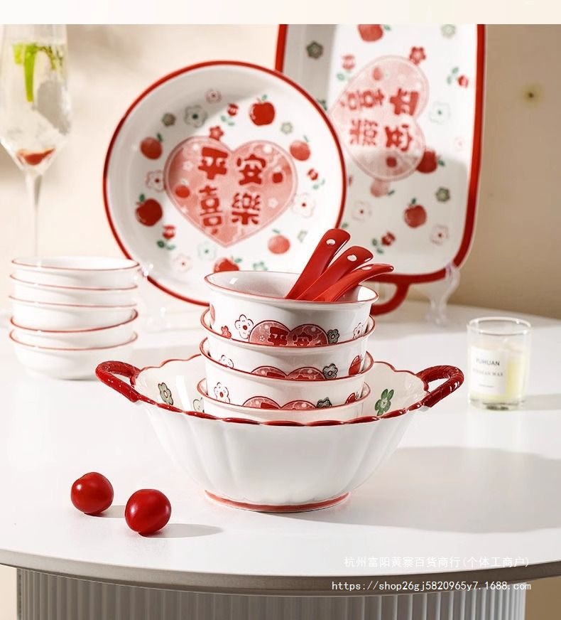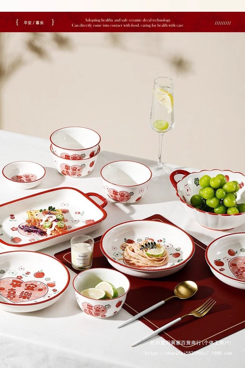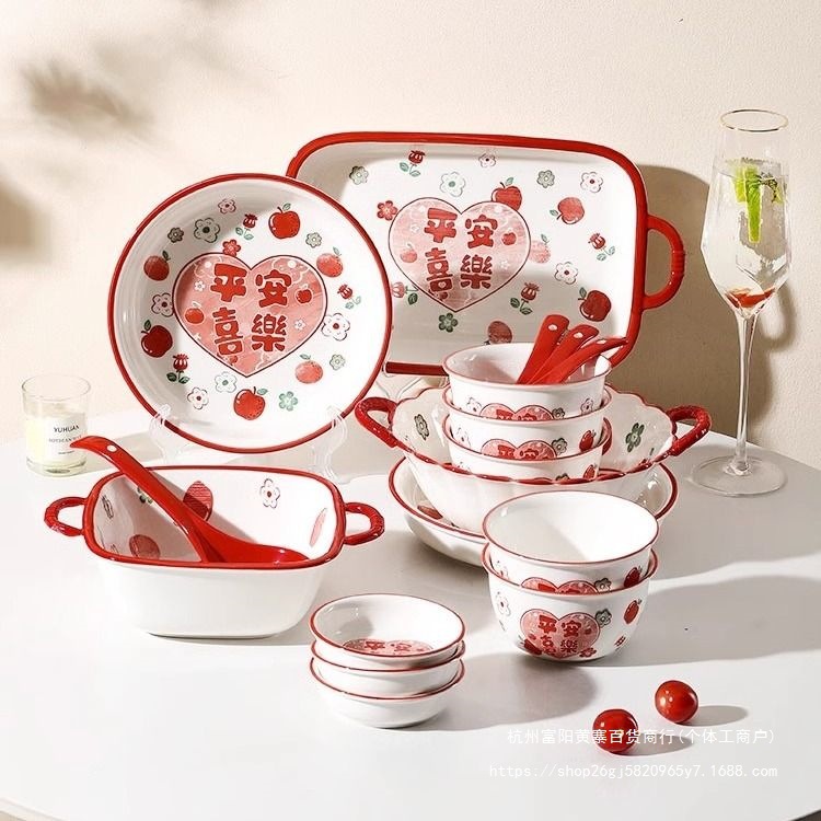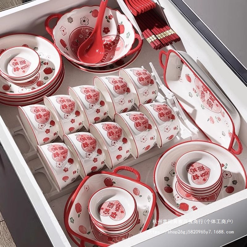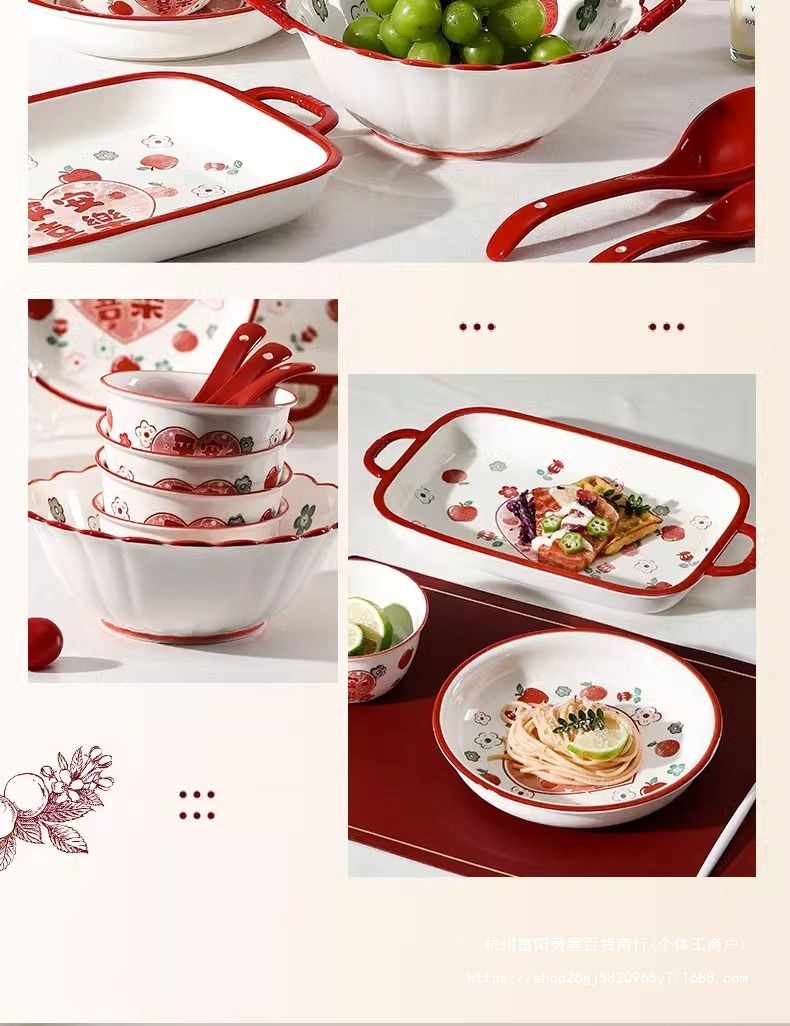 사발과 접시 새로운 스타일 세트 식기 레드 축제 가정용 웨딩 보울과 젓가락 선물 웨딩 세라믹 그릇과 접시 선물 상자 일본 스타일스토어 가기