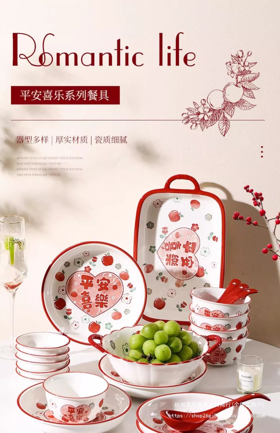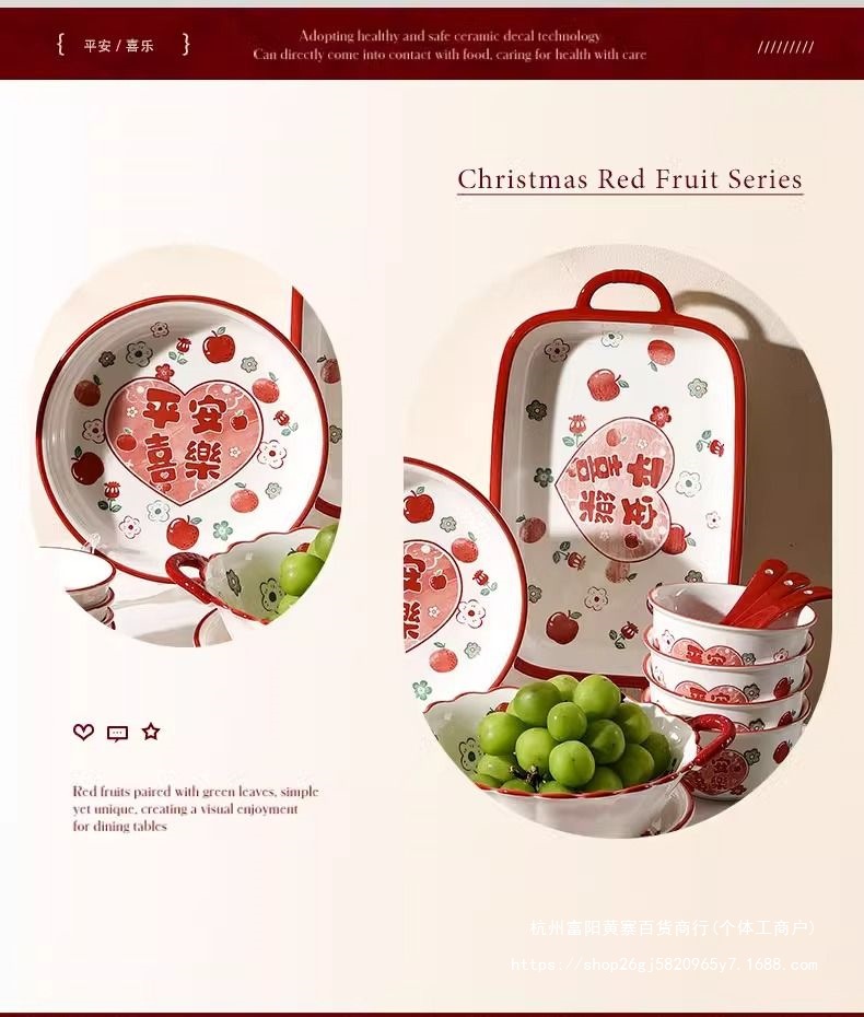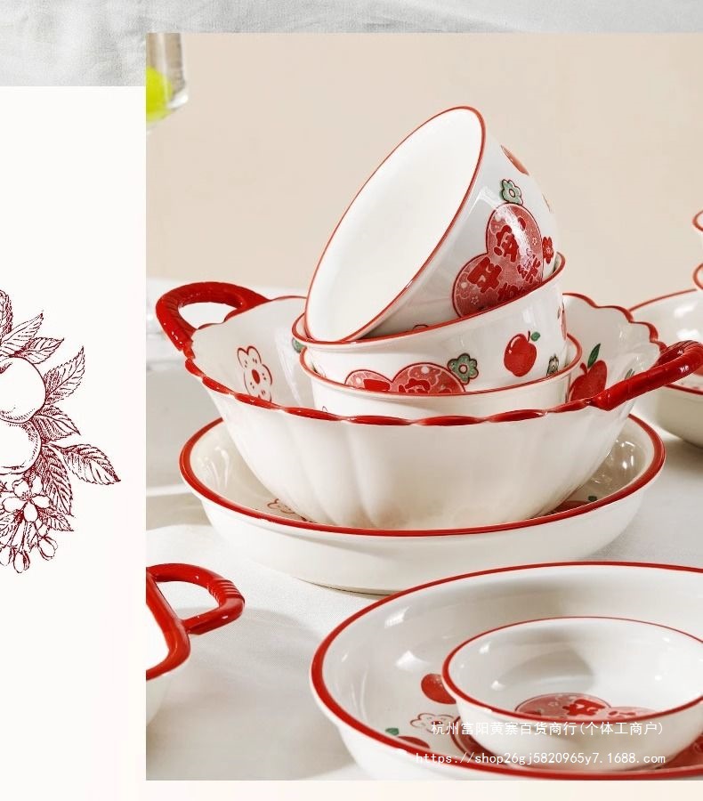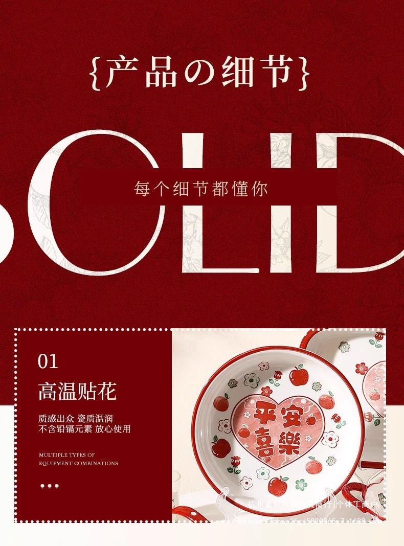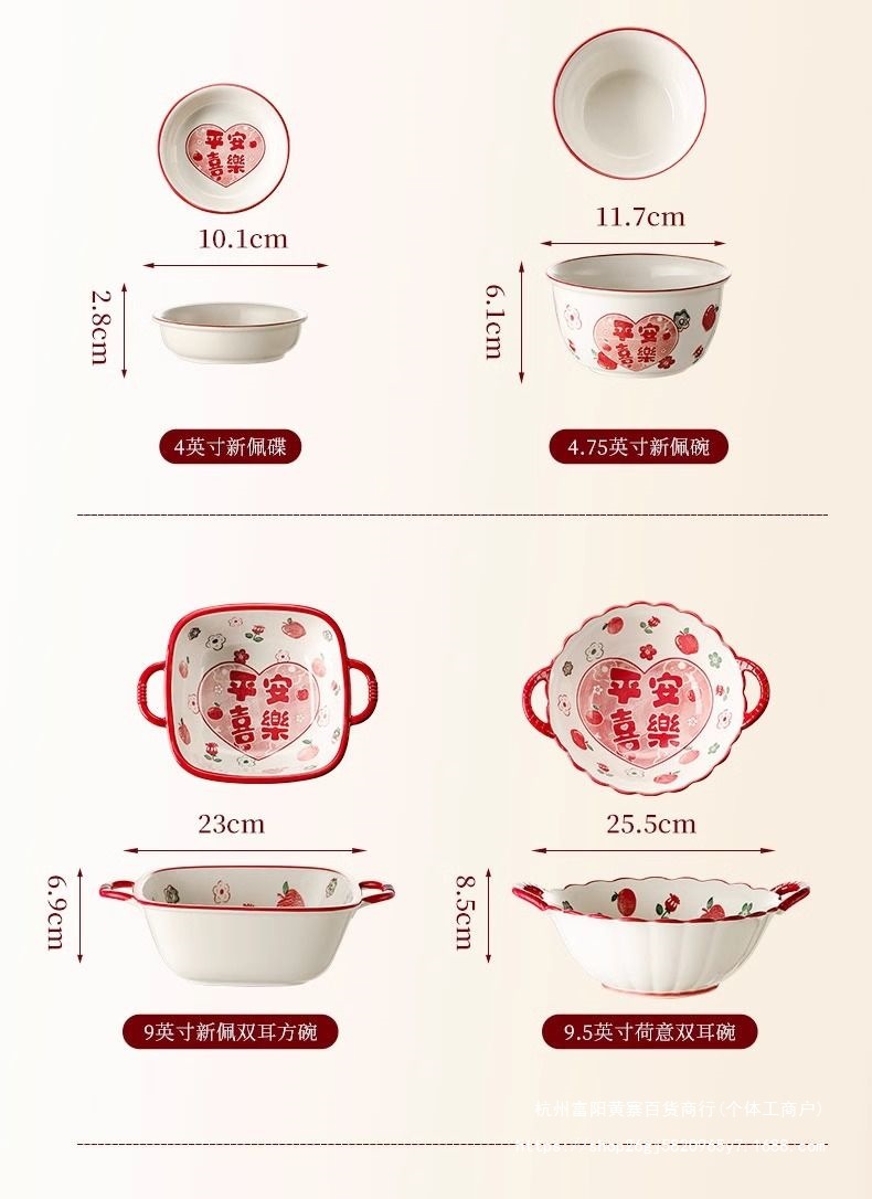 사발과 접시 새로운 스타일 세트 식기 레드 축제 가정용 웨딩 보울과 젓가락 선물 웨딩 세라믹 그릇과 접시 선물 상자 일본 스타일스토어 가기