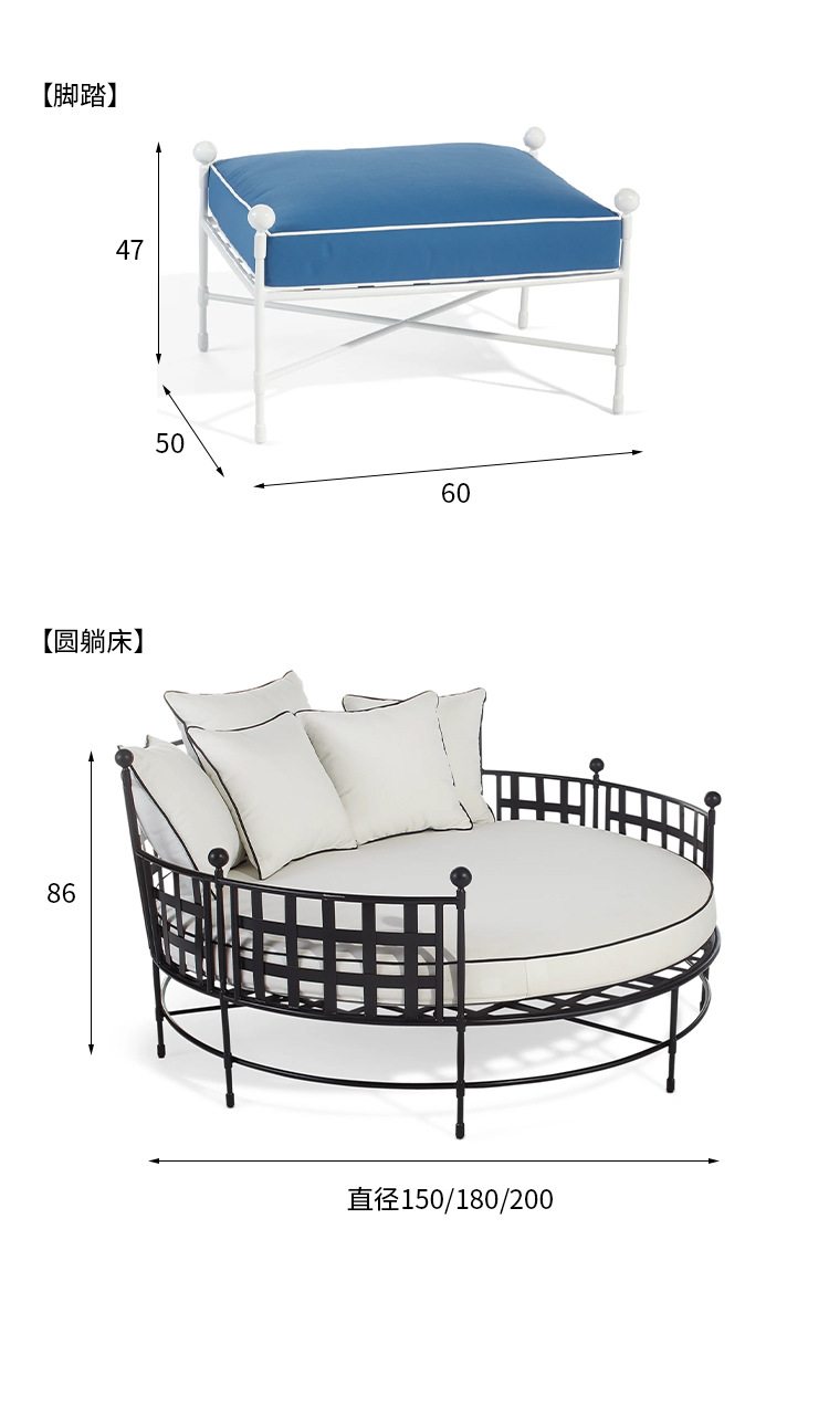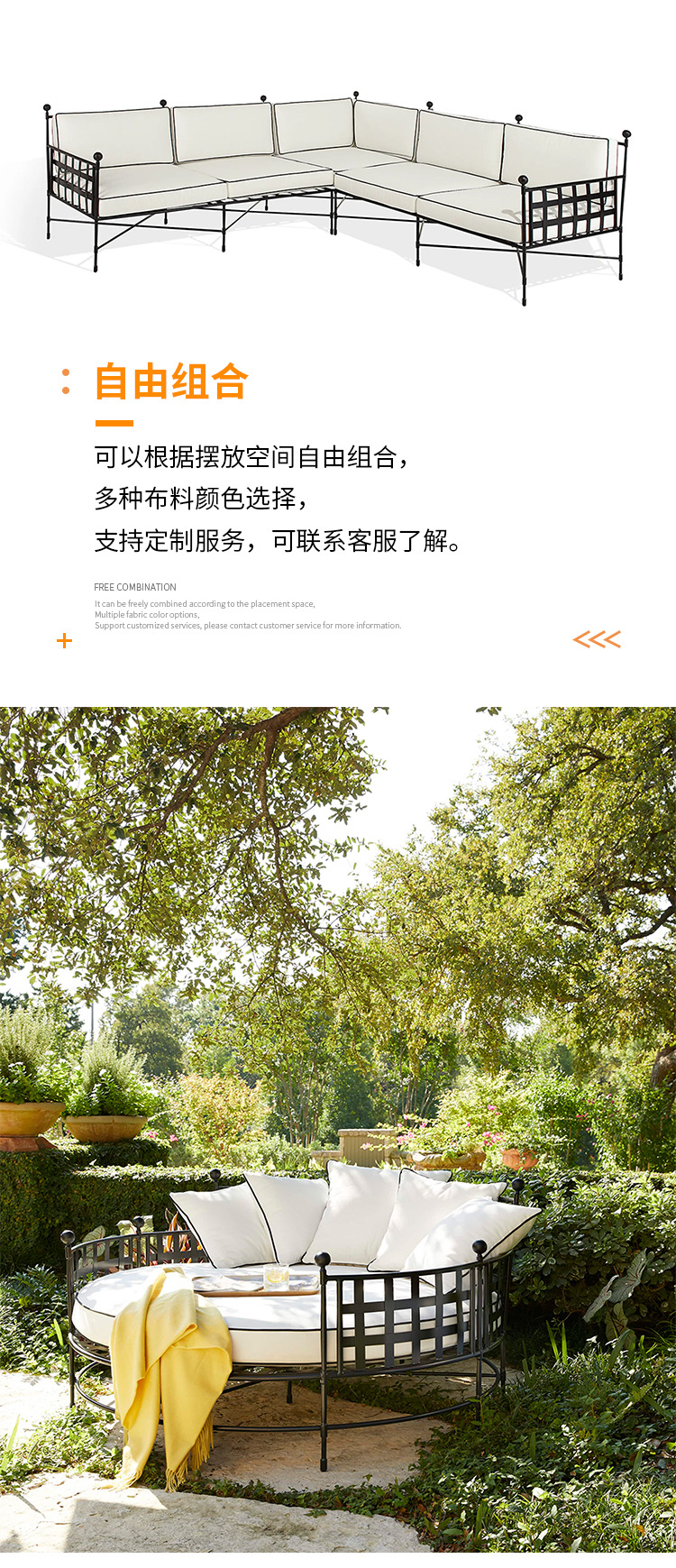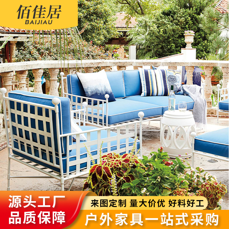 야외 소파 콤비네이션 침대 단철 가구 빌라 코트야드 정원 발코니 스폰지 쿠션 방수 소파 쿠션스토어 가기