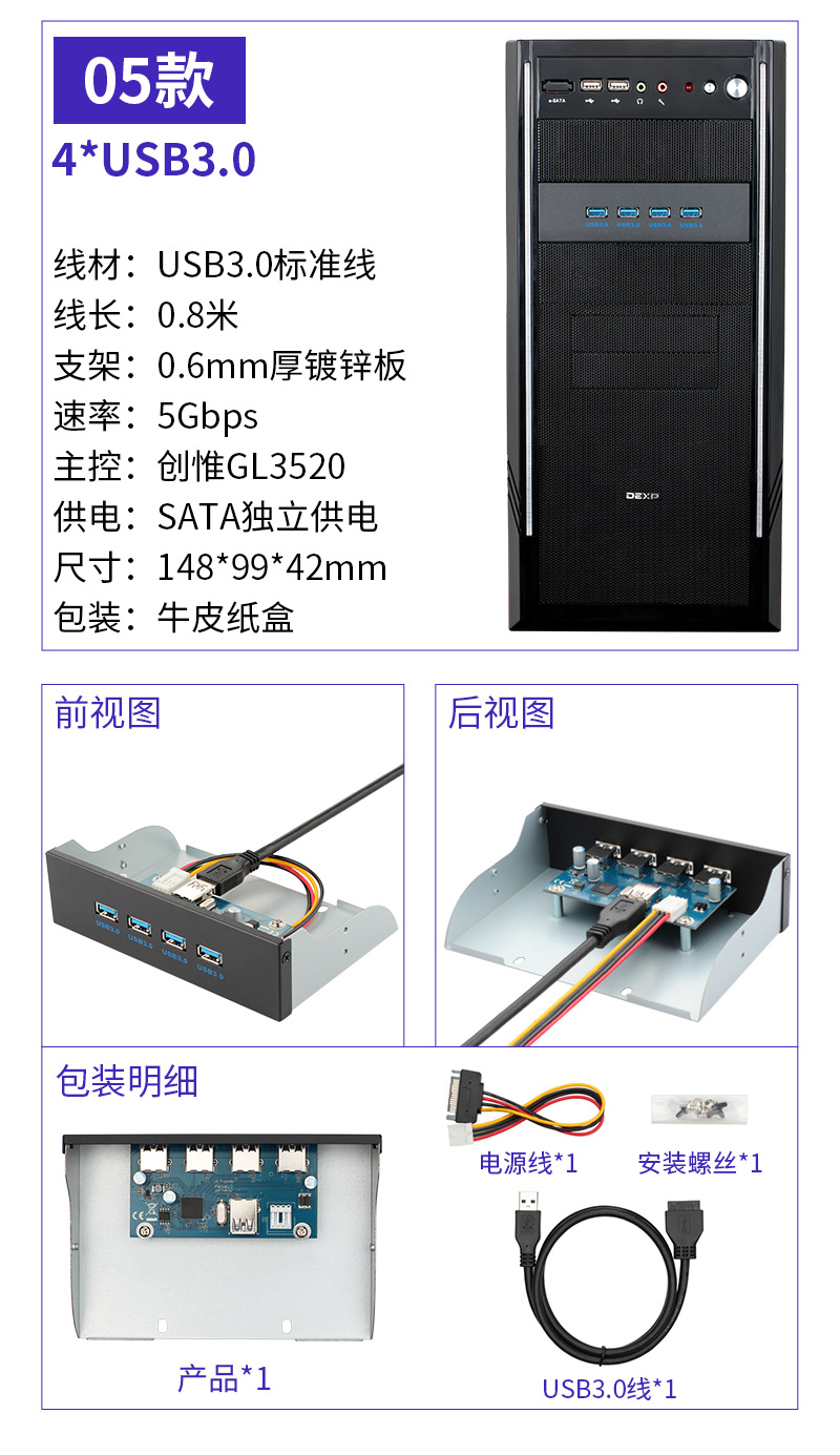 광학 드라이브 패널 5.25 인치 금속 컴퓨터 섀시 USB3.0 듀얼 포트 전면 패널 USB3.0 확장 허브스토어 가기