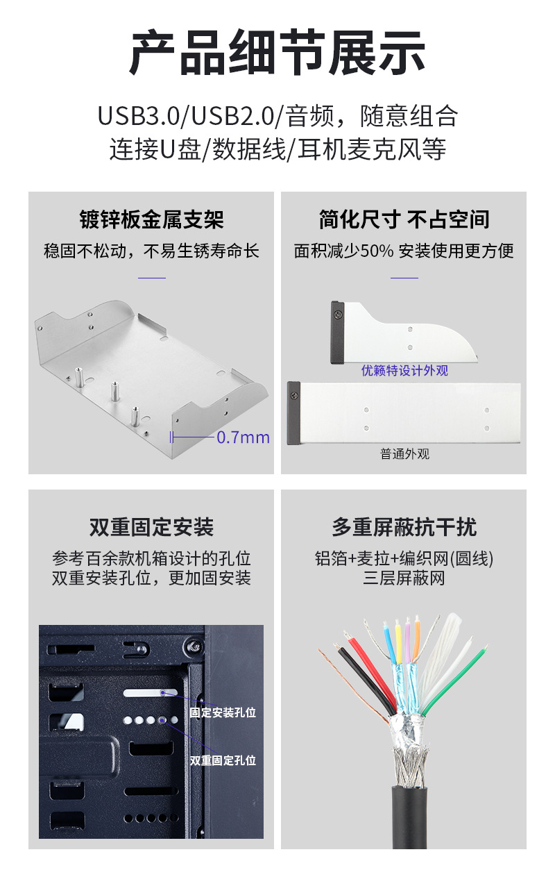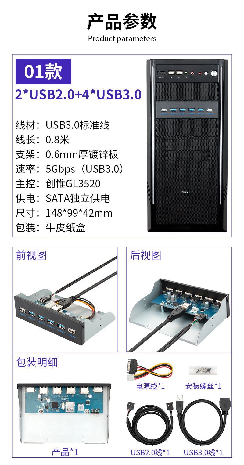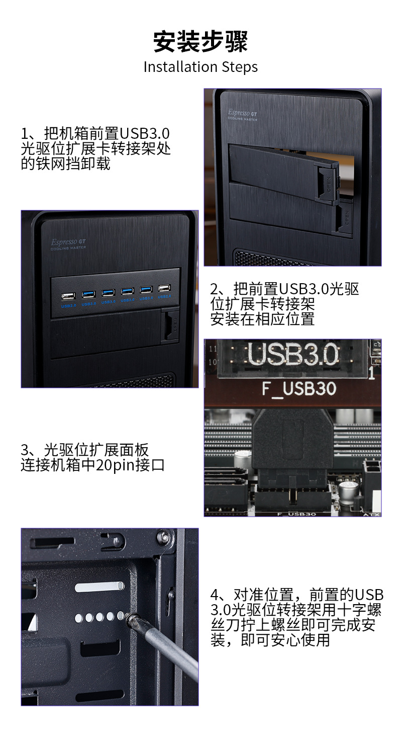 광학 드라이브 패널 5.25 인치 금속 컴퓨터 섀시 USB3.0 듀얼 포트 전면 패널 USB3.0 확장 허브